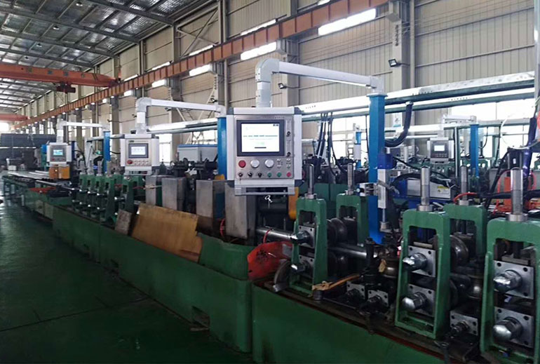 开卷 → 进料 → 粗成型 → 焊接 → 内焊缝整平 → 外焊缝打磨 → 精定径 → 固熔退火 → 在线探伤定径 → 矫直 → 切端 → 卸料 → 成品