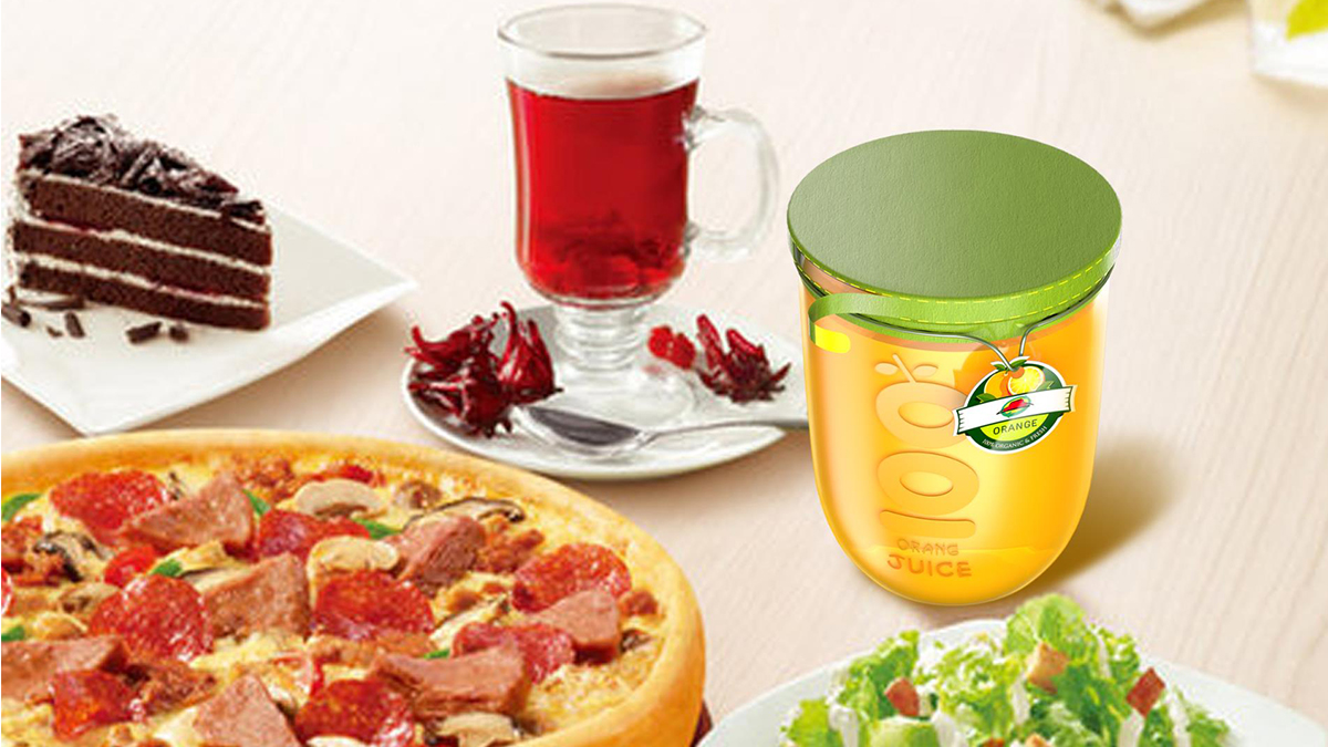 必胜客果汁杯:要新鲜要纯正100%感受炎炎夏日新鲜感。饮料杯设计主要集中在年轻、活力、新鲜、有价,强调 “100%” 核心产品卖点信息,便于识别,差异化设计。开盖的体验是最能体现产品新鲜的最大卖点,采用一次性拉环式的扣盖拉环式的开盖方式,让消费者真正可以体会到100%果汁的新鲜。体现了产品的唯一性和专属性独特的小标签与拉环设计体现新鲜。