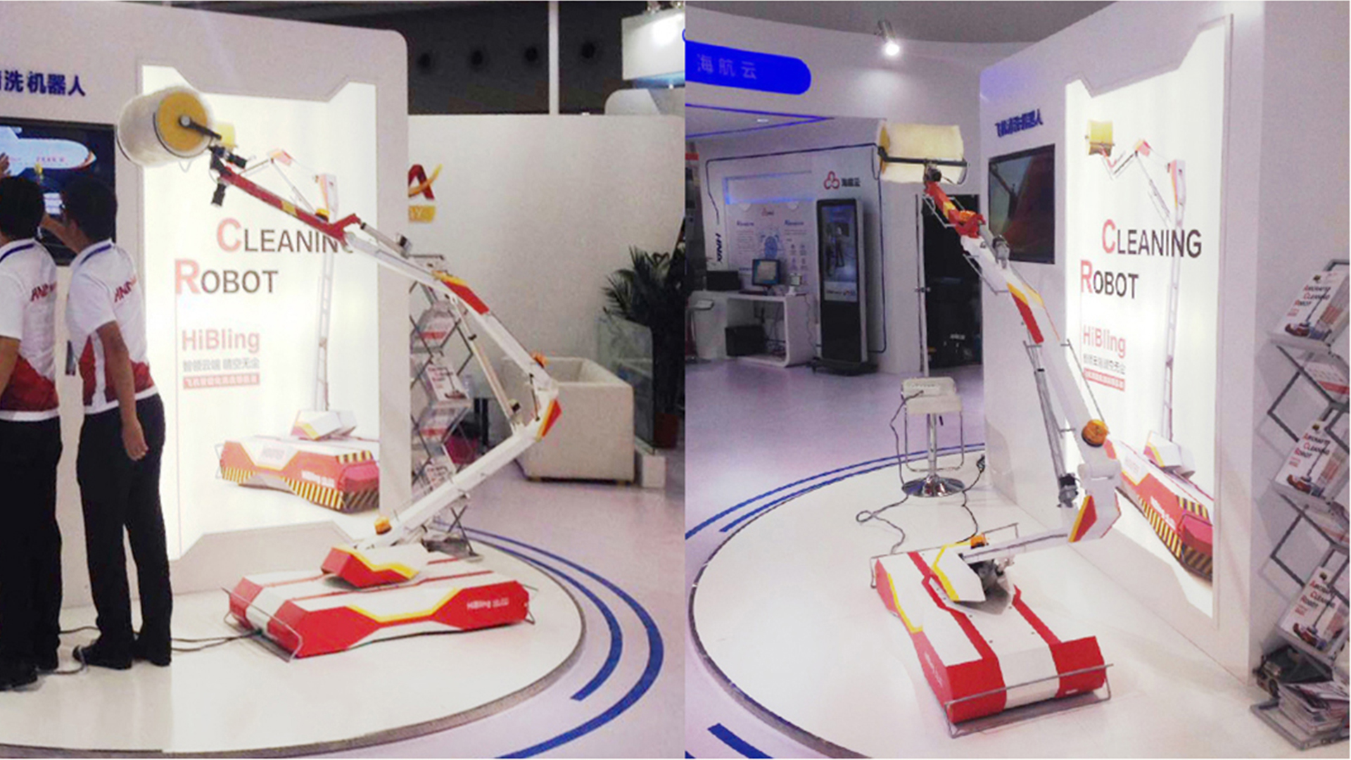 机器人本体分为2个系列,可用于清洗窄体飞机和宽体飞机;本体配置了先进的传感装置、液压和控制系统、稳定可靠的臂架装置以及多功能刷架,确保能够达到清洗飞机目的。