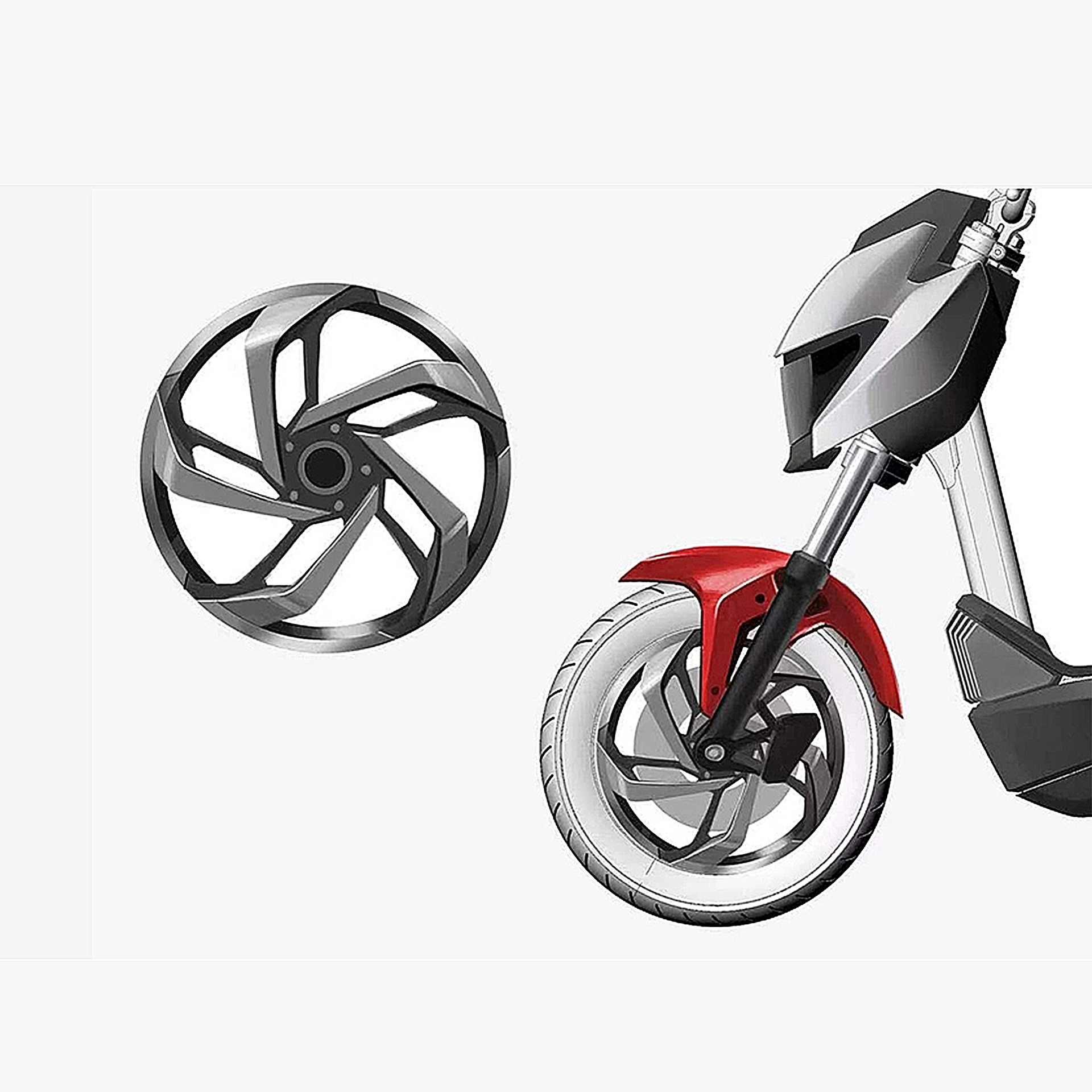 风格探究二:智酷极客。运用几何要素分割,镂空的形态,使得整体看起更为轻便,营造出电动车更为时尚智酷的气息。