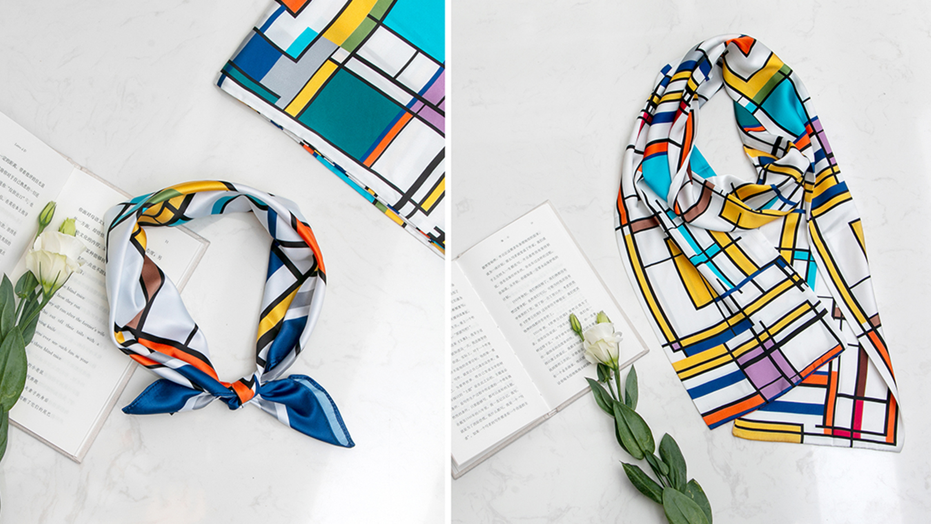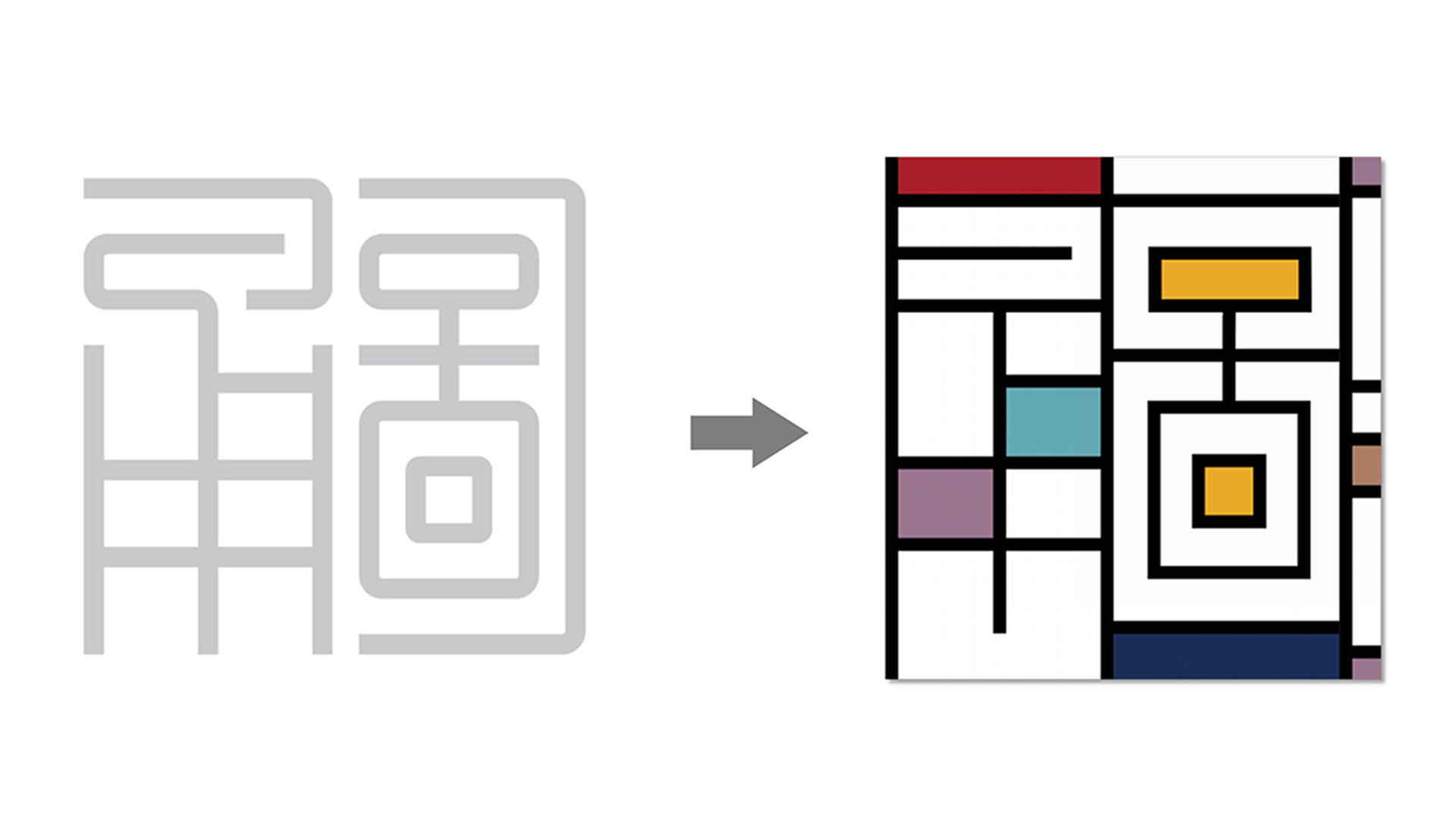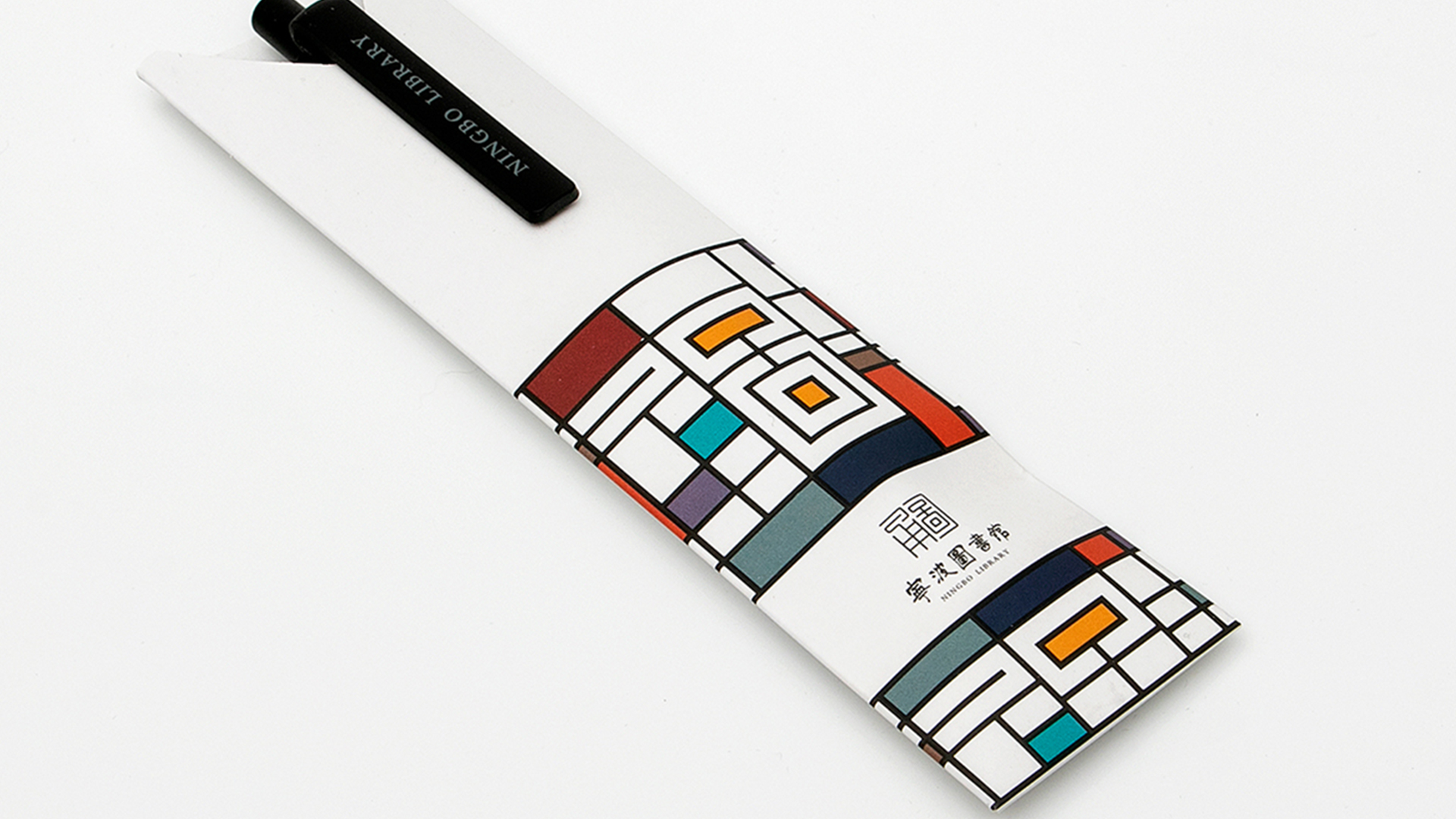 形式一:标识整体分为两部分,一部分是"甬图"二字使用了"篆法"的变形,另一部分是"宁波图书馆"书法字体,设计师用现代手法最大程度的还原了任继愈先生的字体原貌,使之更加平衡稳重,可视为一种历史文化记忆。将新馆建筑中提取的线面元素与蒙德里安风格结合,产生了最初版的应用图形。但是纯粹的蒙德里安元素,在图书馆文创的应用上总显得有些许单薄,多次的更改与尝试中,图书馆logo的出现让设计师的眼睛亮了起来,同样的块面化元素,为什么不做一个结合呢?