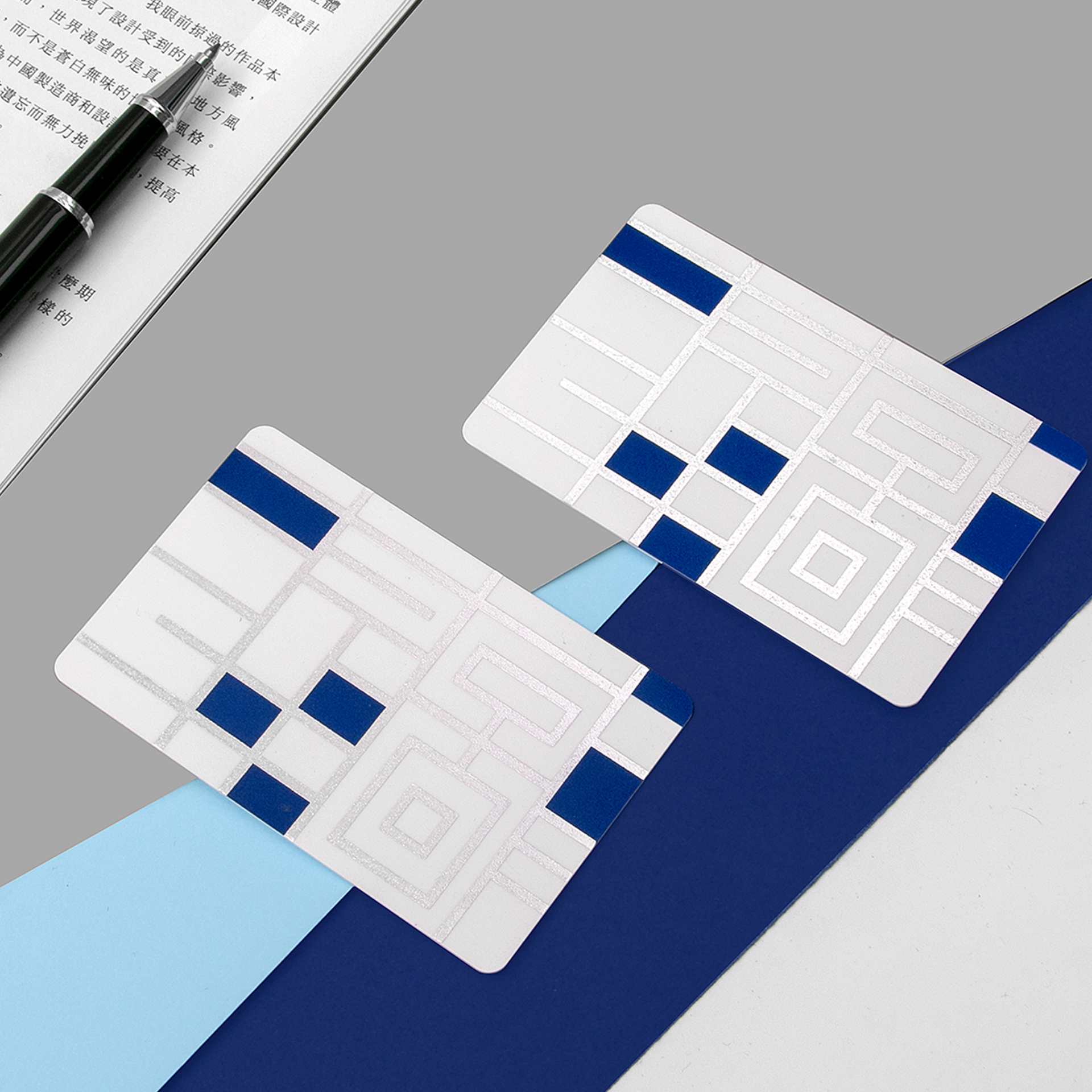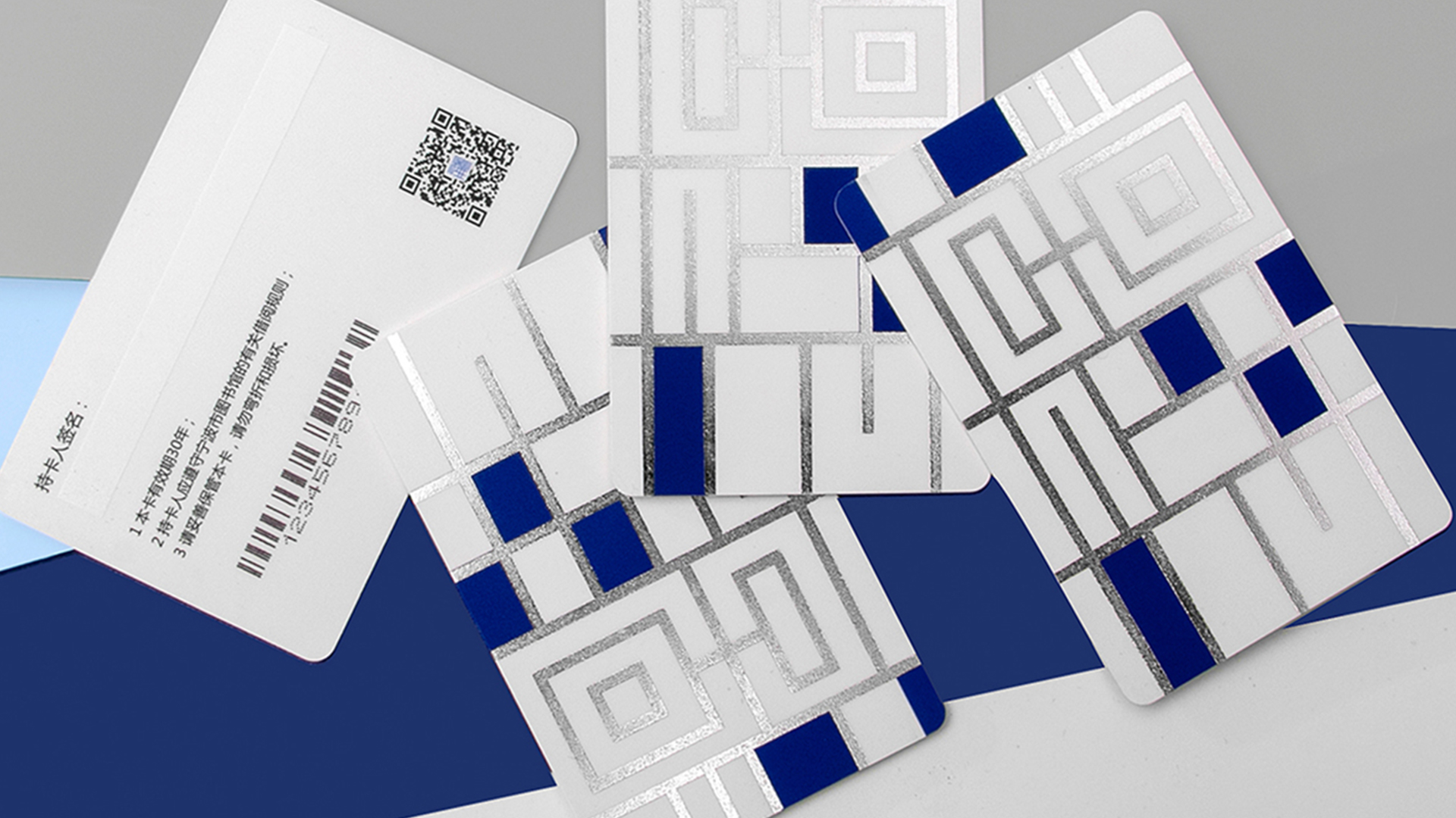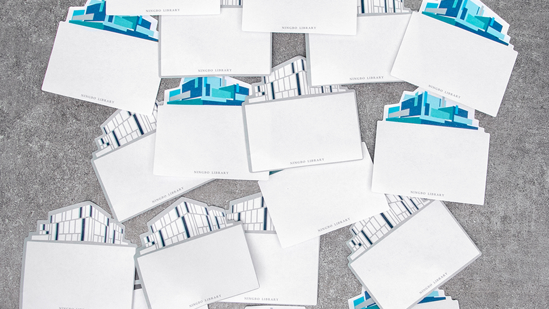 ②深深浅浅的蓝色系块面大胆拼贴,整体简洁而富有童趣,营造出图书馆海纳百川包容万象的一面,无论你是什么人,走进图书馆,都是一个读者。“新馆”系列图形元素一确定,接下来与之前“甬图”系列一样,就是产品的元素应用了。