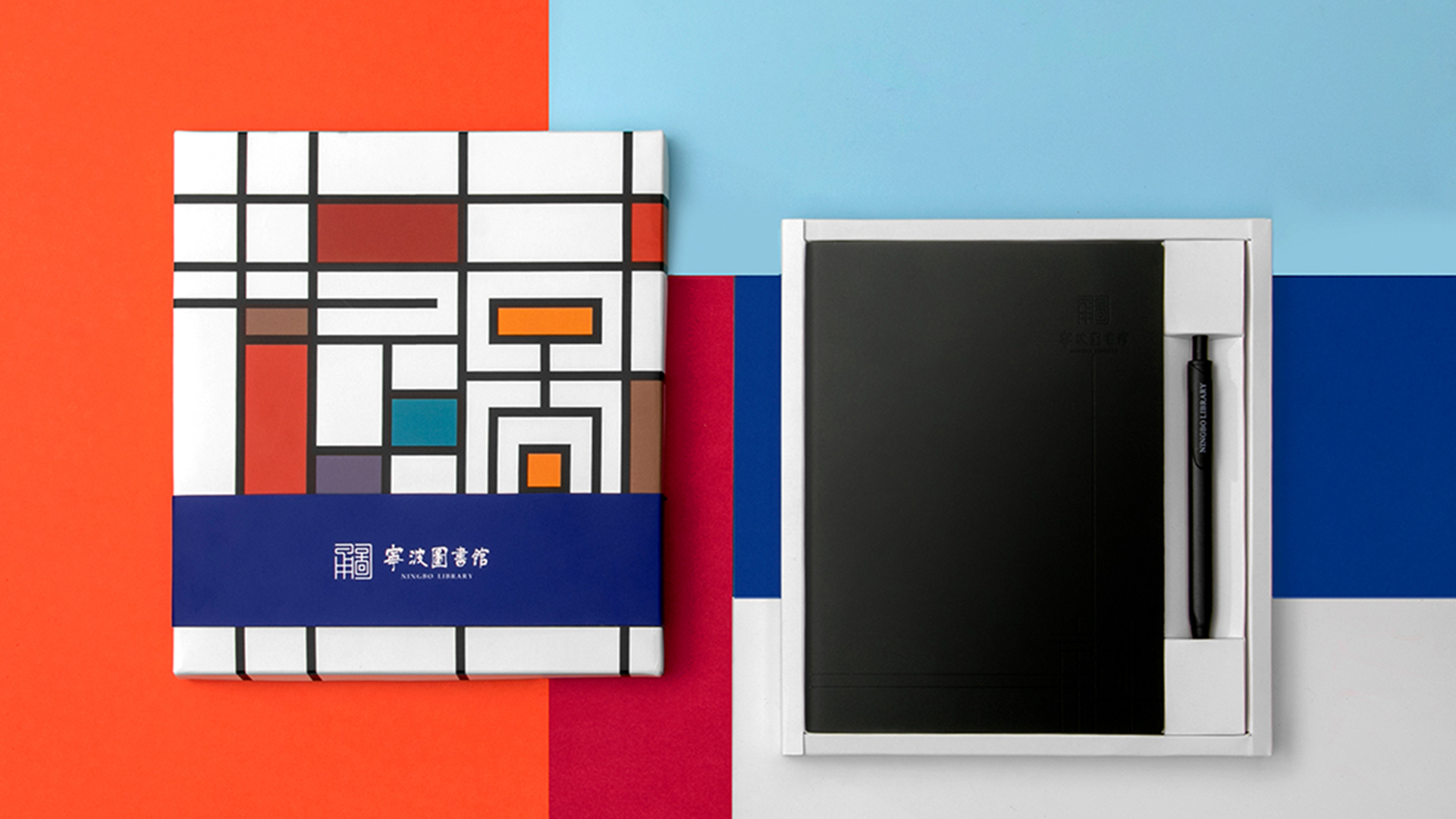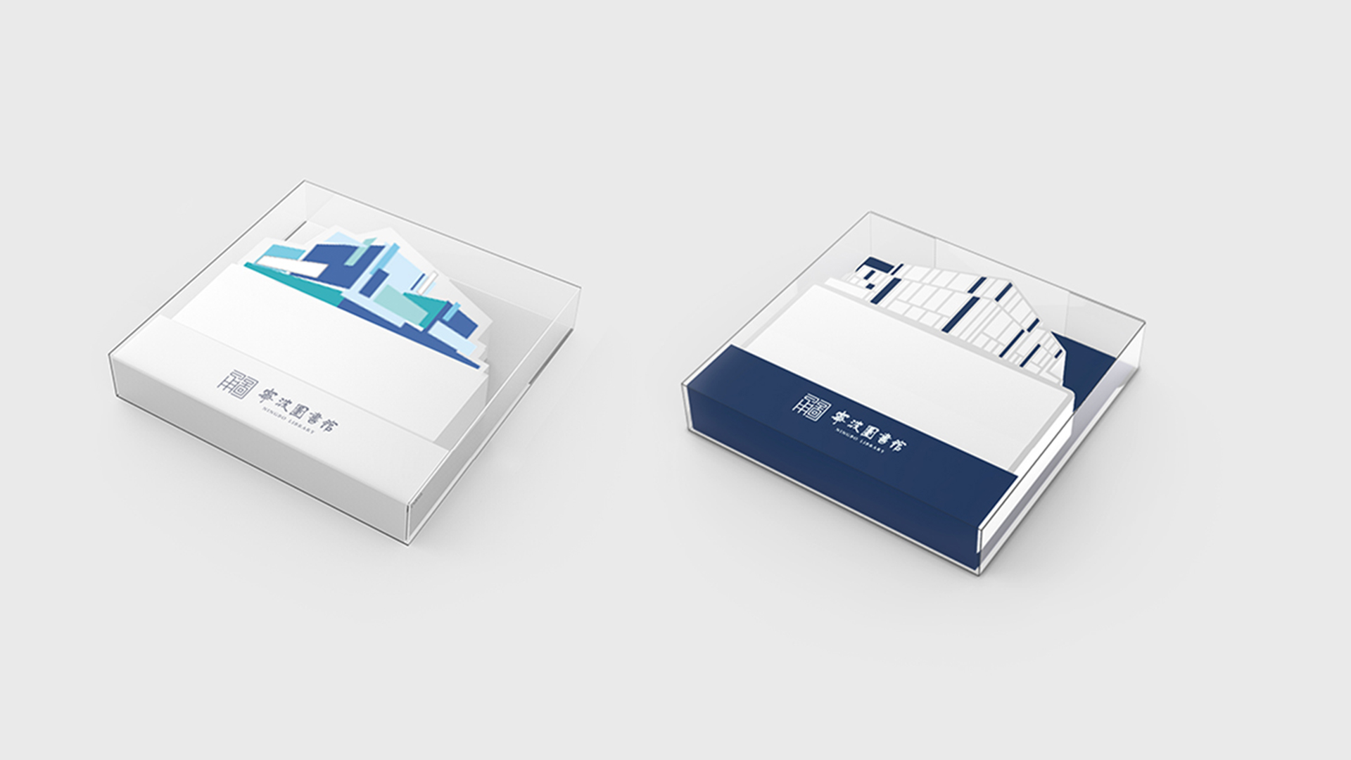 宁波市图书馆形象标识以蓝、灰为主色调,整体风格融合传统意蕴和现代化风格。此次宁波图书馆礼盒包装设计根据图书馆形象标识为设计元素,展示了更加活泼,现代化的视觉效果。