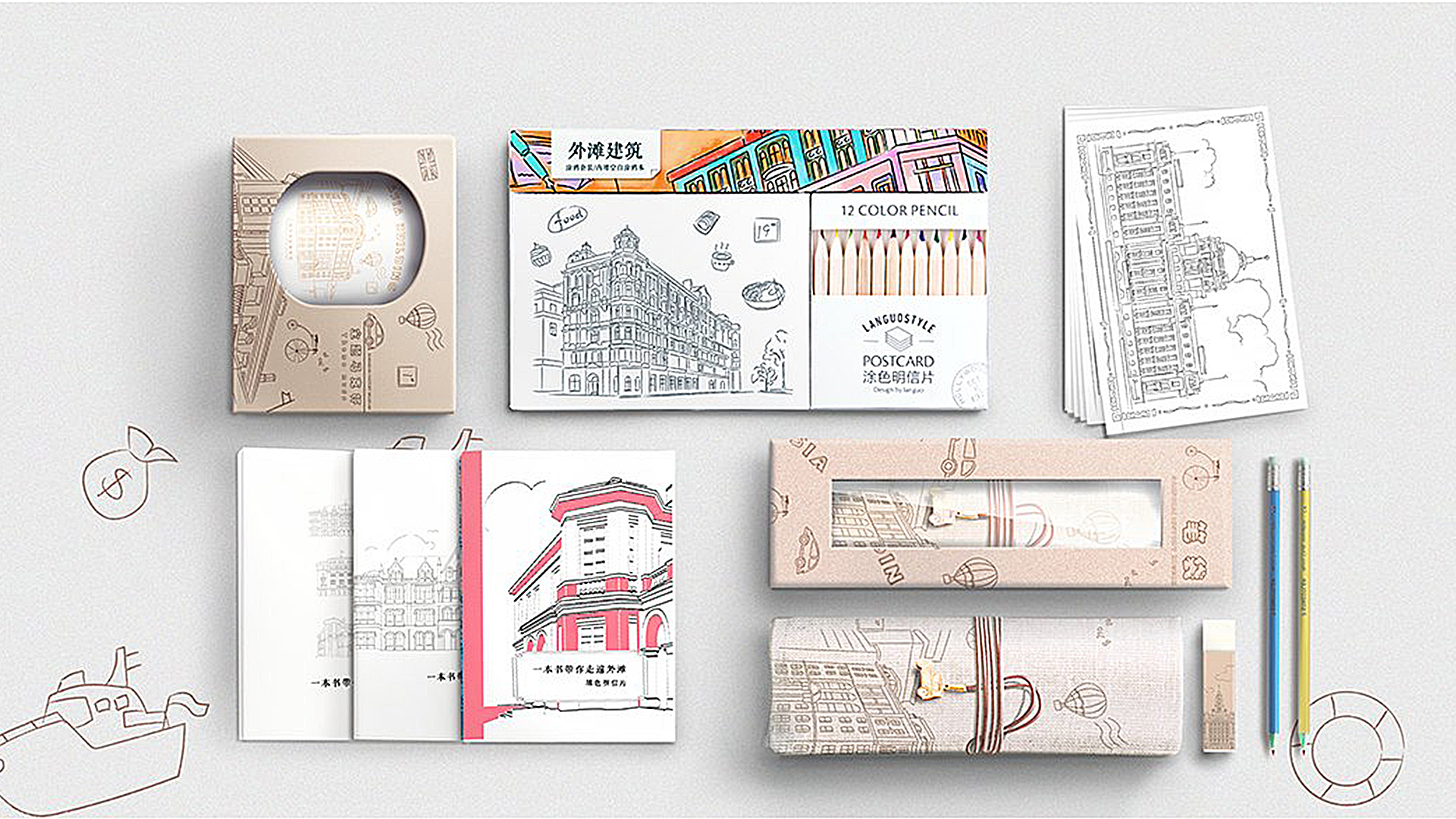 木马设计通过对外滩建筑群的摄影、矢量元素的提炼设计、上海生活场景的设计,进行了产品系列的创新设计,体现上海精致生活的缩影。