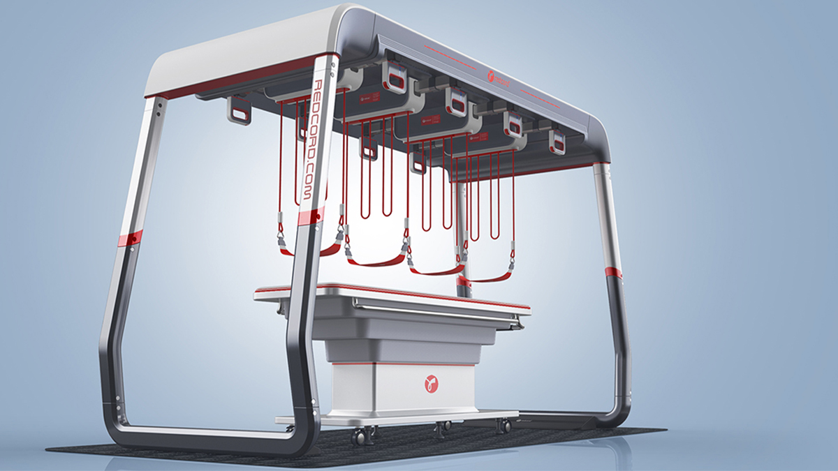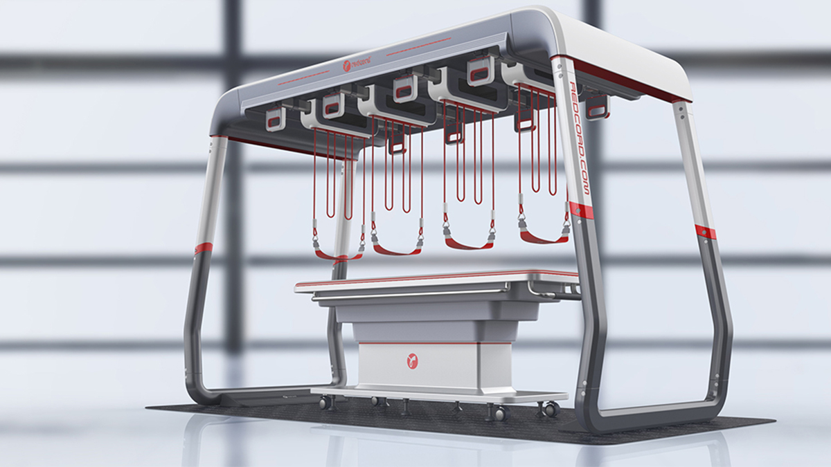 “红绳“ 康复理疗终端是一款集康复医疗和运动健身一体的设备。设计团队将移动模组和医疗床进行有机组合,打造了一体化的外观设计形象。