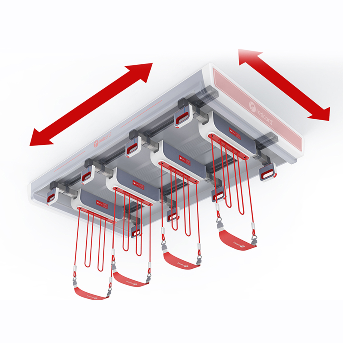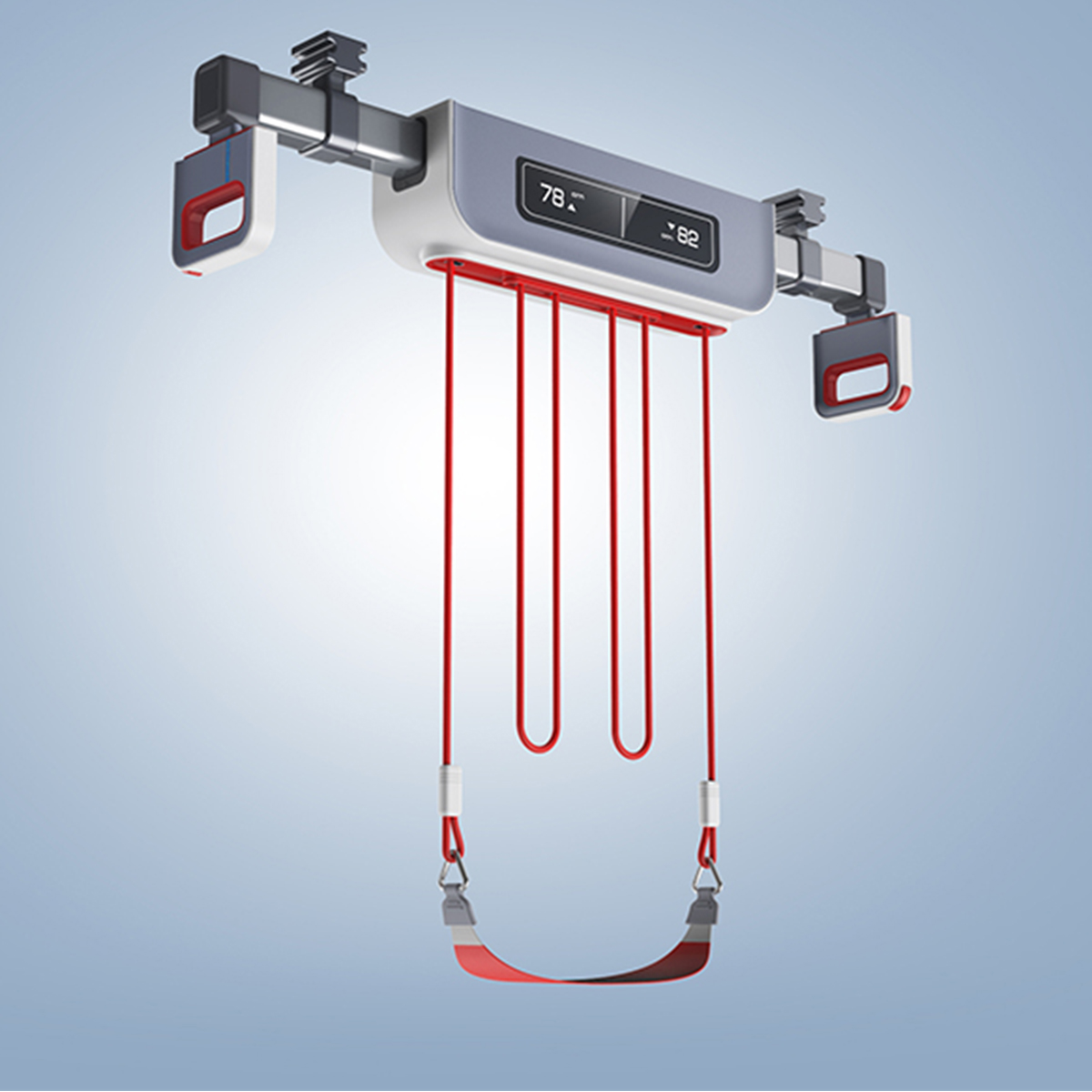 设计师给顶部配备了4套可安装的模组,这样可以保证覆盖各种体重和身高的健复人员。医疗床的加入,使整体设备具备了更宽广 的活动空间和康复动作,也能让健复医师更加方便操作。