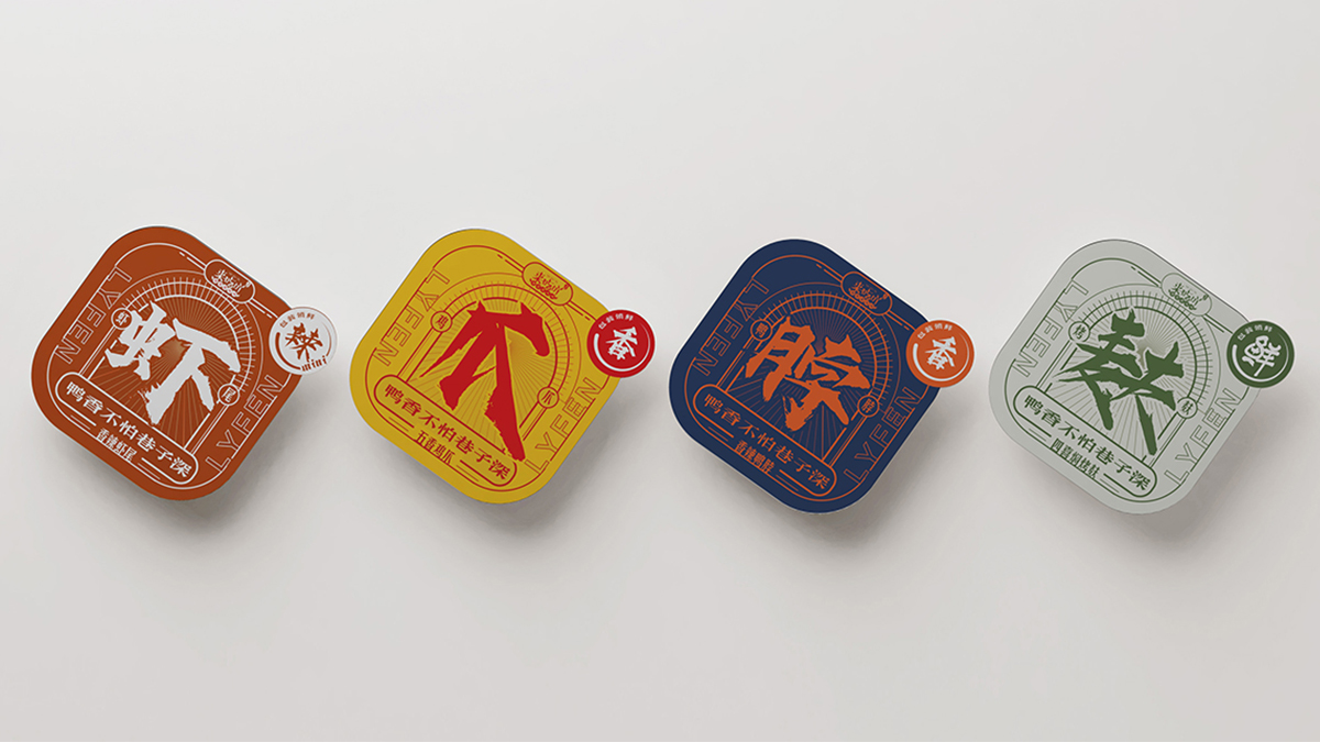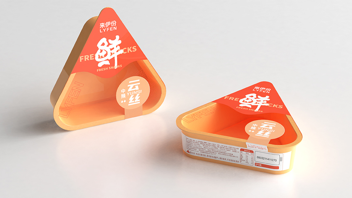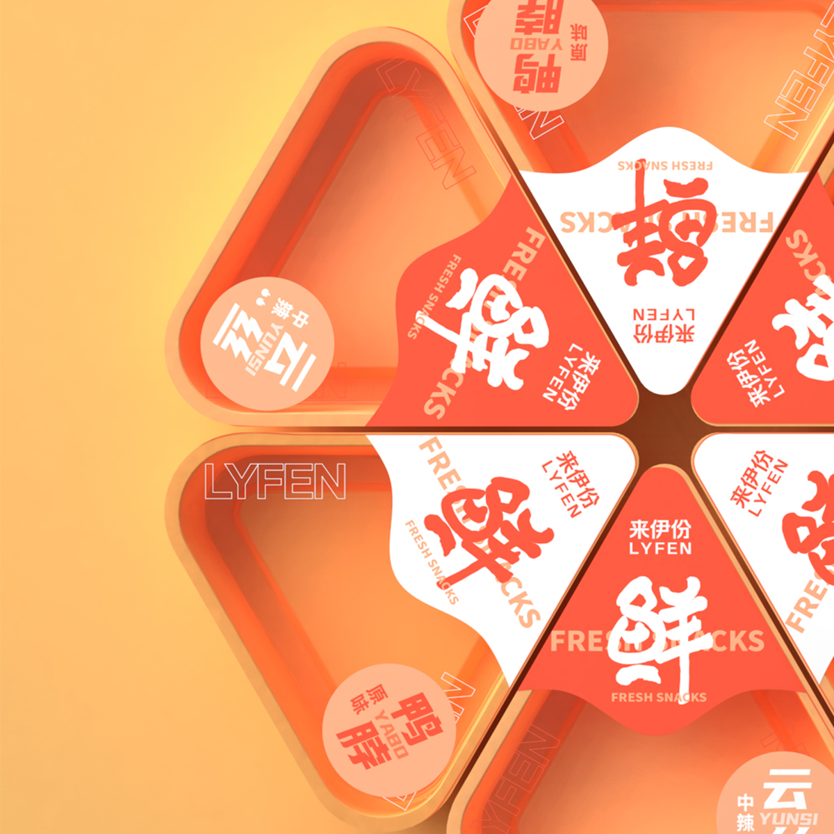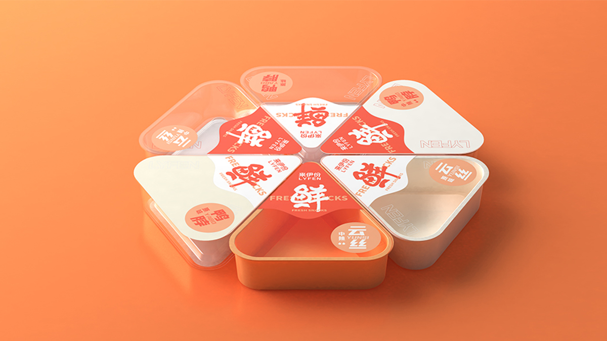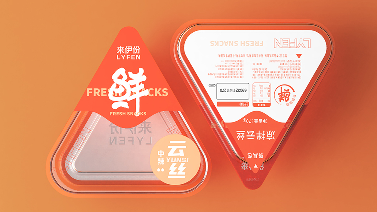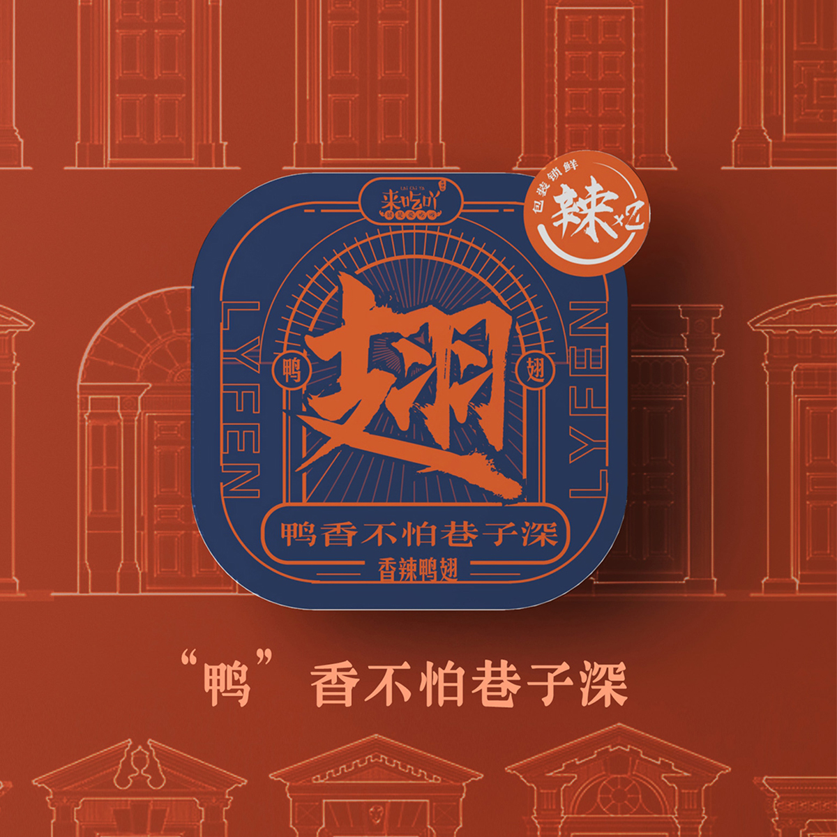 来伊份-给生活加道菜:八边食盒,为味觉锦上添花。采用了中国传统餐具锦盒的八边造型,八也象征着八方来客,兼容并蓄,雅俗共赏的包容态度,与来伊份的品牌文化相符。底部贴纸内附纸巾手套包,提升消费者食用体验。活力鲜食,运用高饱和的明艳色彩和可爱年轻的鸭子形象提升视觉吸引力。