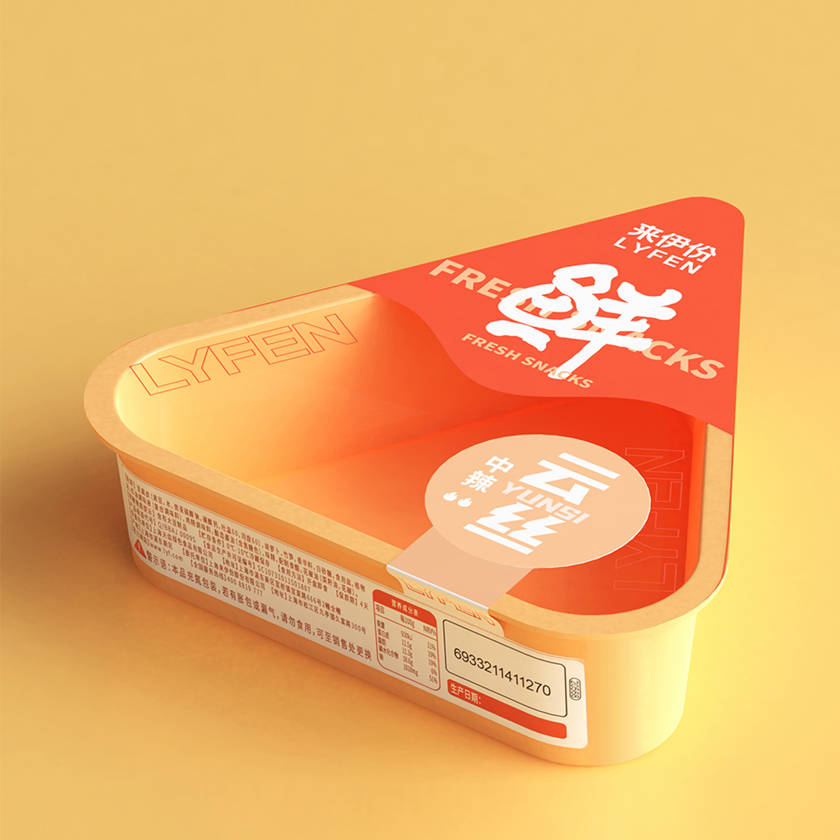 来伊份-锁鲜装:突出来伊份品牌核心“鲜”的通版印刷采用双贴纸的形式,正面品类信息贴纸,提升用户选购体验。透明材质,新鲜看得见,突出来伊份品牌核心“鲜”的通版印刷。采用双贴纸的形式,正面品类信息贴纸,提升用户选购体验。背面详细信息贴纸,同时也作为底封,封住在盒子底部增加的手套包。通过增加盒子厚度和减小倾斜角度,使盒子能够独立站立,增加陈列美观度和方便性。