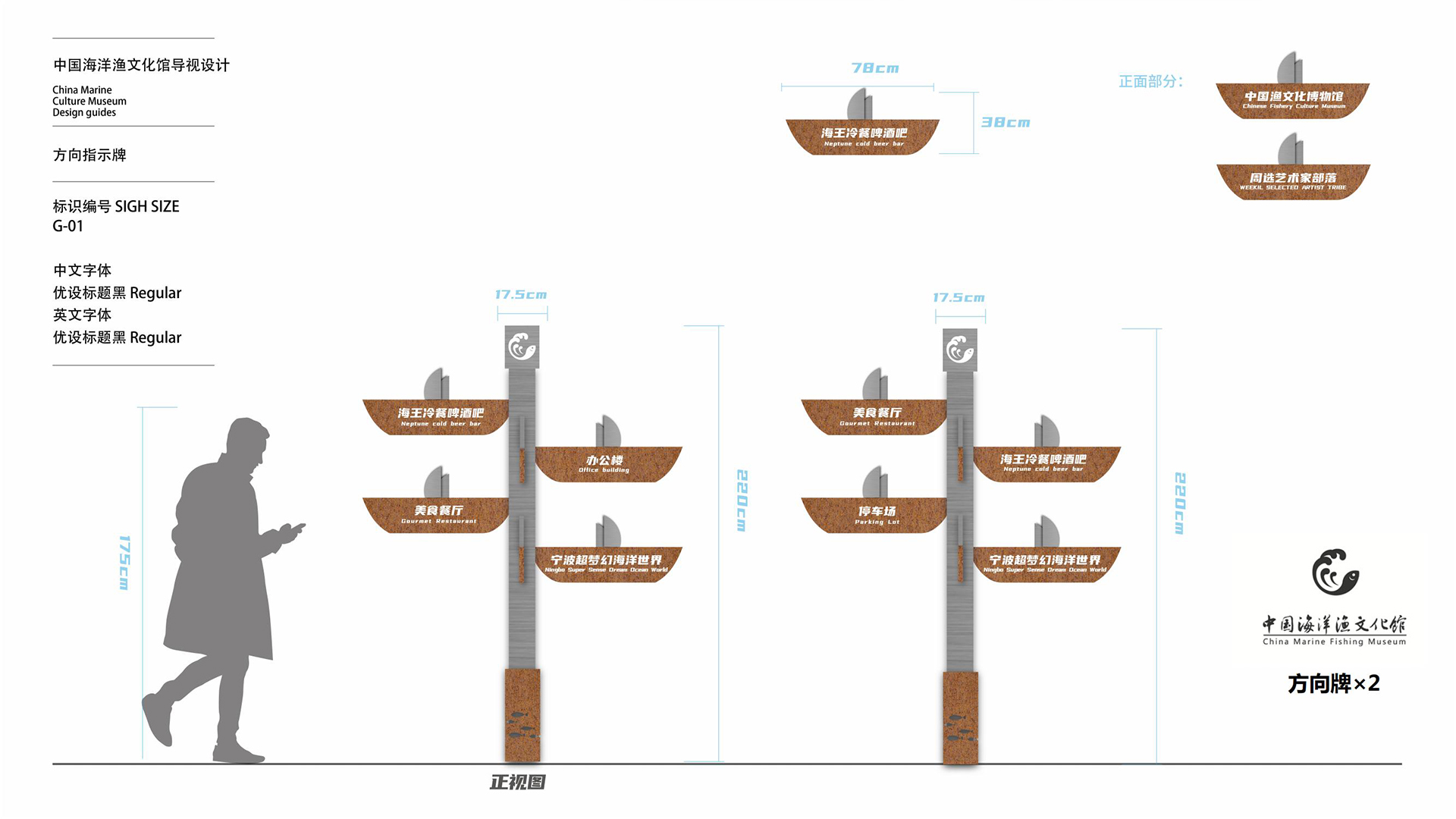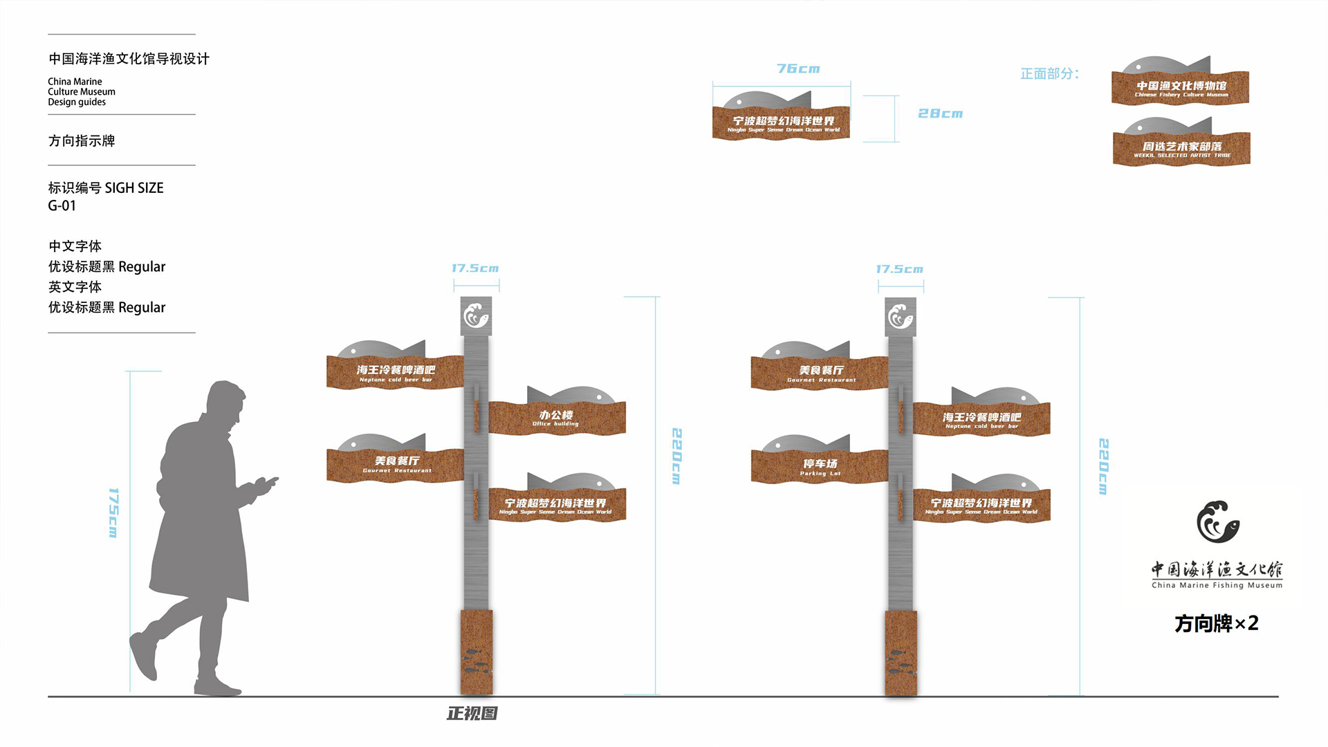 该馆以历史为脉络,部分还原了渔村旧貌,运用AR、裸眼3D等技术,展现了象山以海为生、与海共荣的海洋文化发展历程和我国海洋渔文化的多样性和丰富性。同时,中国海洋渔文化馆充分利用旧厂区空间,建设了城市会客厅、文创非遗孵化区等项目。我们团队将导视设计以渔文化为切入点进行。
