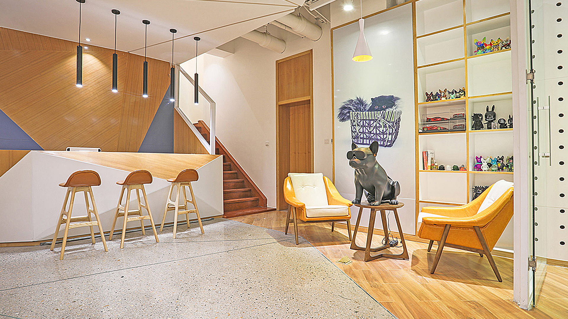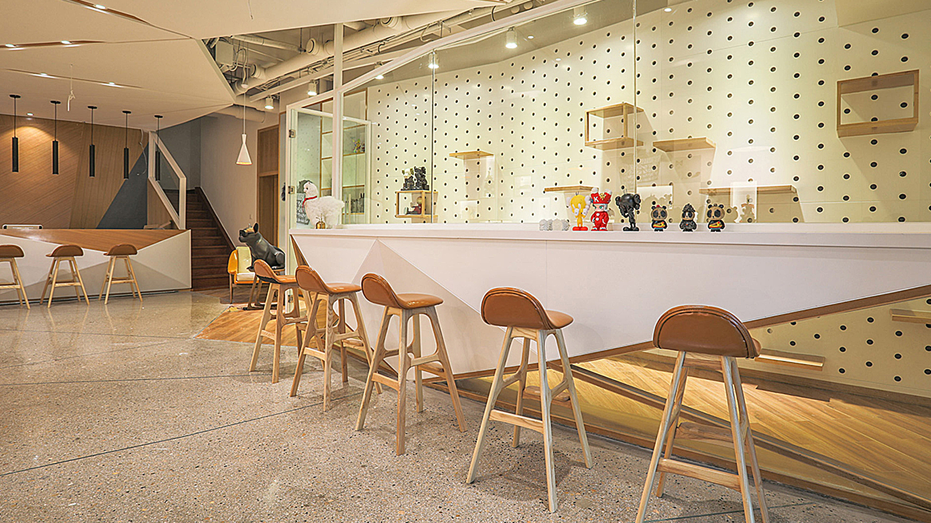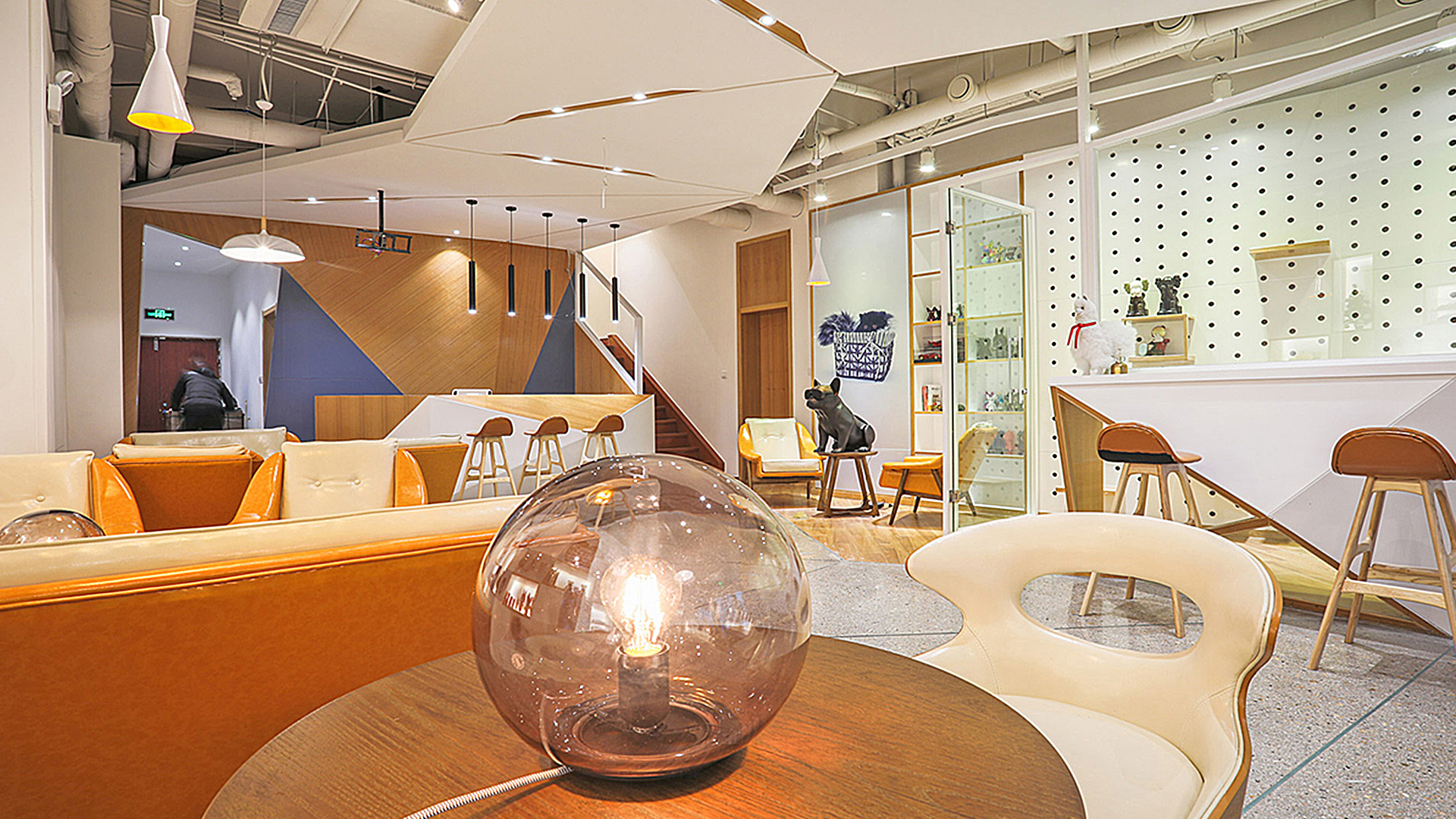 这次的设计,我们将重新诠释宠物店的含义,社区门口的宠物店不能只是一家宠物美容或者宠物用品的小超市,而更应注重休闲生活氛围体验,形成养宠物人们之间能够进行话题交流的场所,为这些热爱生活,热爱宠物的人们提供家一样的感受。空间以暖黄色作为主色调,以及一系列宠物装饰造型,都很好的表现出店铺的“温馨度”,让顾客到店体会到的不仅仅是专业、放心,更多了一份温暖。设计师在大门出设计了一个橱窗,偶然经过的路人透过橱窗,里面的温馨场景一目了然。