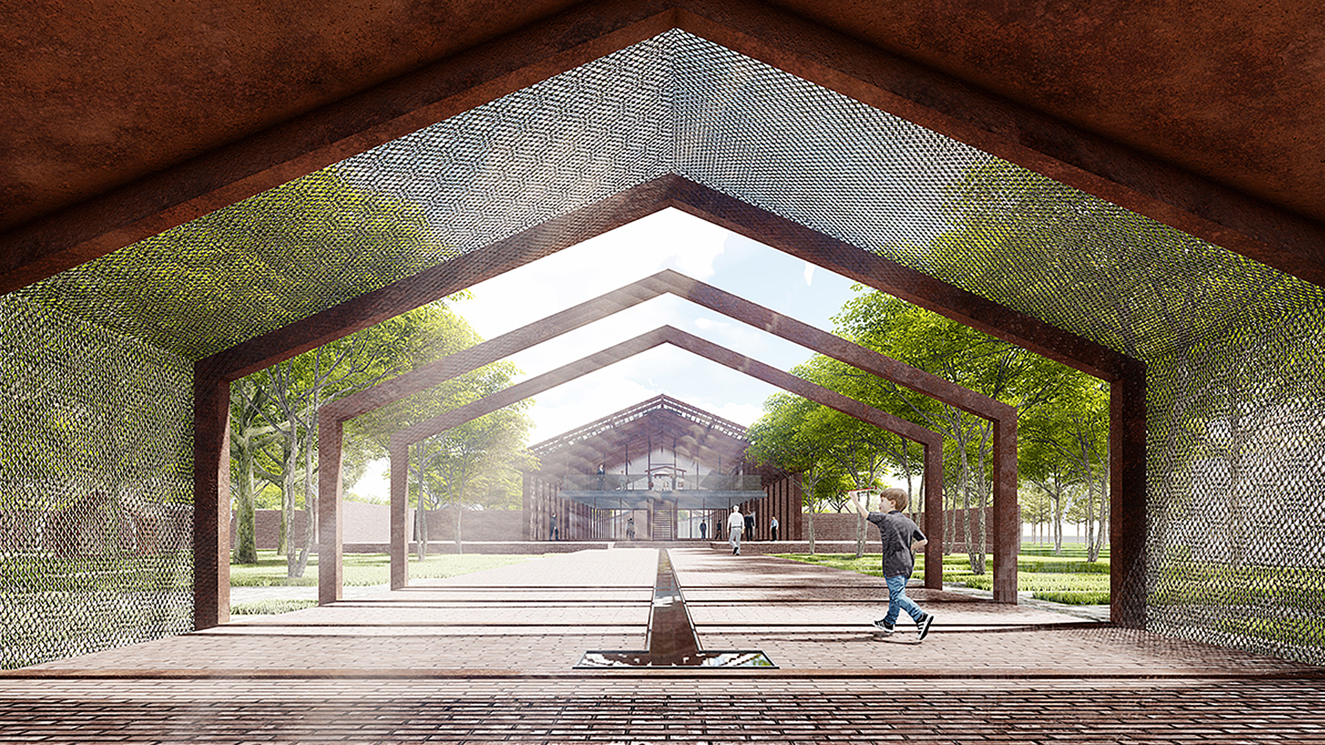修缮工作坚持“整修如故,以存其真”的原则。对建筑的毁损部分进行原样修补,要尽量使用原材料、原工艺、原样式,以求达到原汁原味,尽量保持其沧桑的历史感,还原历史本来面目。周边历史环境的整体保护,还原猪公馆园区的场景,将建设者的奋斗精神与历史文化的展示、体验等活动融合,是园区永续发展的核心驱动力。历史文化的特征不仅仅是反映在物质空间环境上,更多的传统文化如民风民俗、传统戏曲、传统工艺等,是通过非物质的形式表现出来的,并且又往往以物质空间为载体、形成有形无形交融的文化空间,将非物质遗产与历史建筑整体传承。以猪公馆IP为核心,挖掘一系列猪公馆内核进行集中展示,让观众深刻了解猪公馆的内涵及石化人的精神。设置咖啡馆、文创销售空间,打造文化IP的交流与休憩的休闲空间。品牌logo由直线勾勒的主体建筑外轮廓和文字组成,简洁而富有识别度。同时为让观者从每一处不留痕迹的设计中获得极致体验,特此为园区设计了整套导视系统。