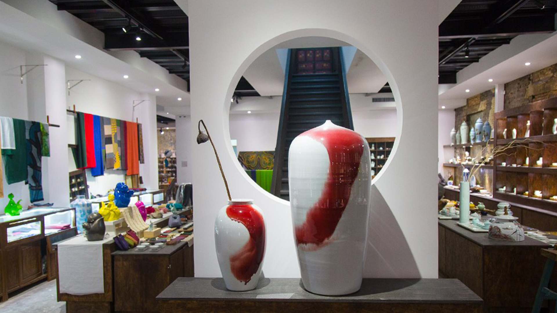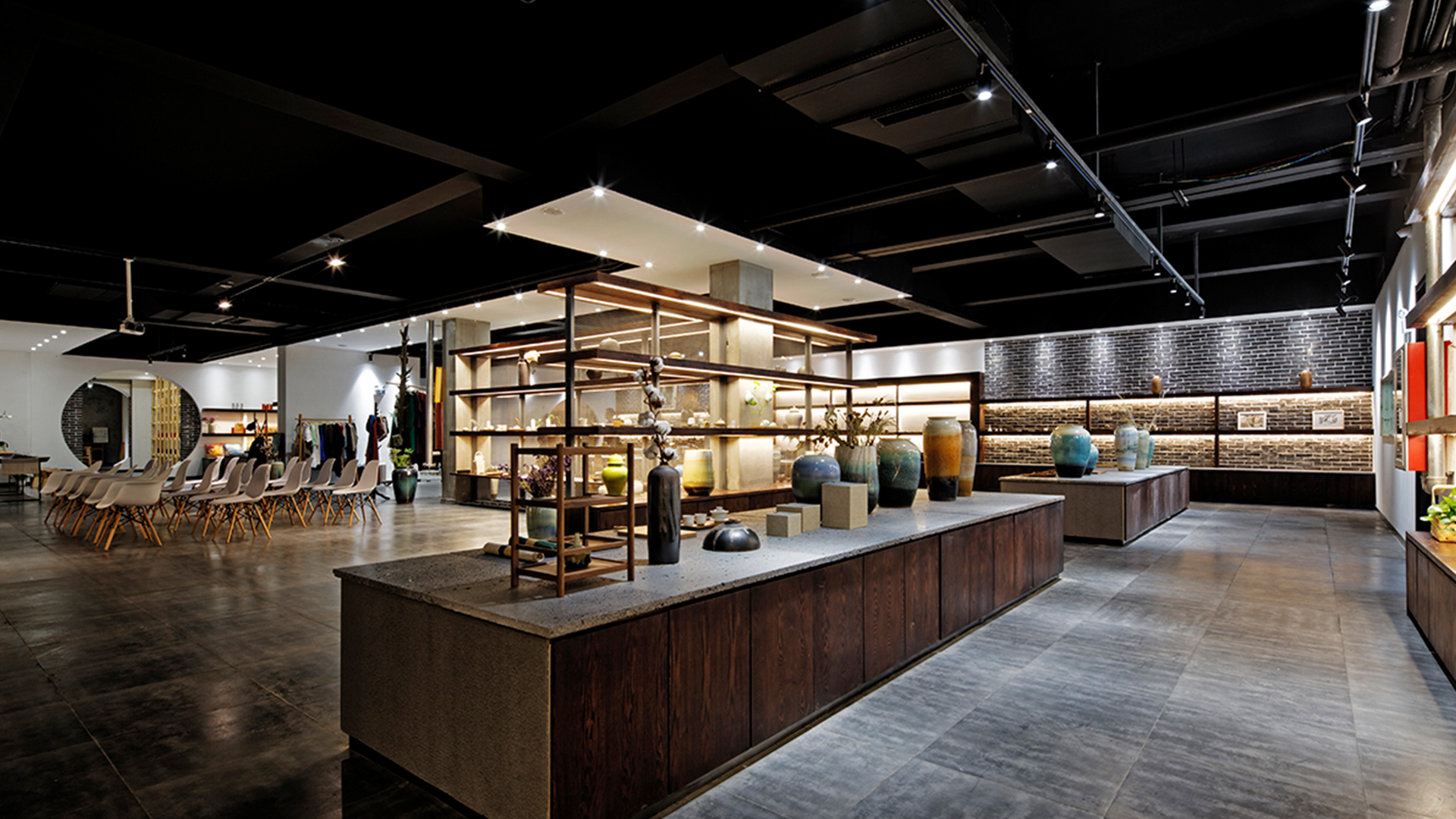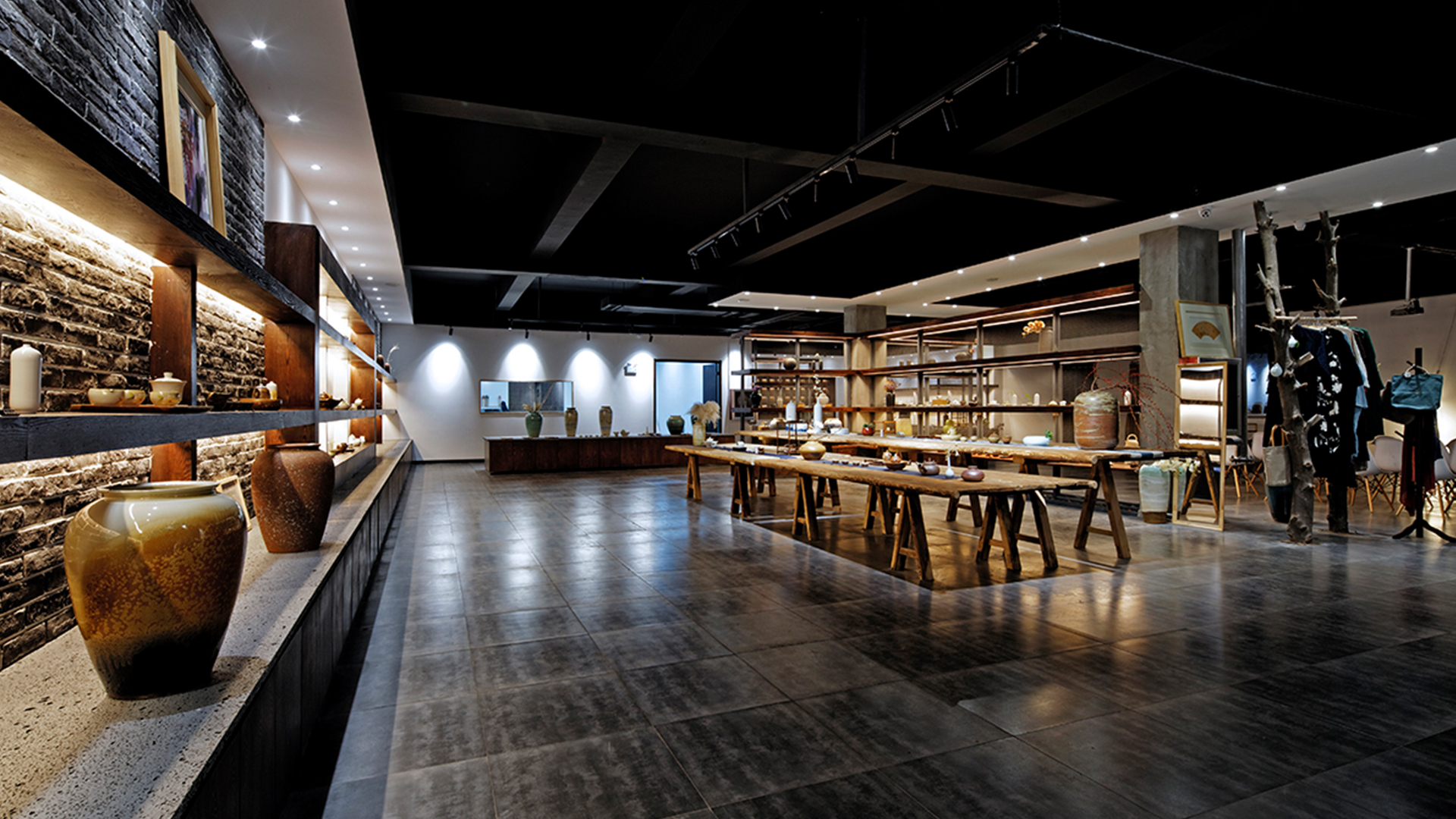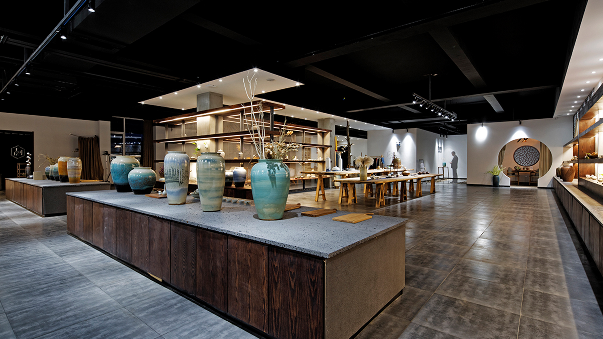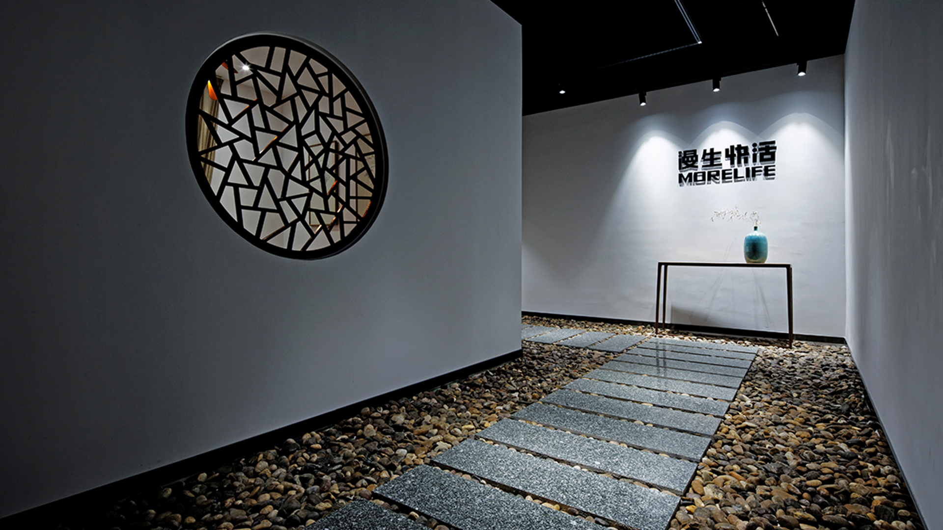 不争论,不辩解,不过分坚持,让本性自然释放,也许有一天我们还会走向自己的反面。如果说平衡是世界的本来面貌,那么节制就是自我的修行。在欲望似乎没有尽头的今天,节制便显得弥足珍贵。此项目运中江南园林中曲径通幽之形,设计在方寸之间强化了艺术瓷器的雅致特别,进入后为一个集展示、零售、体验及咖啡的综合空间。一扇木门、一个橱窗、一个景窗、一个圆形门廊,以多样含蓄的方式与艺术对话。