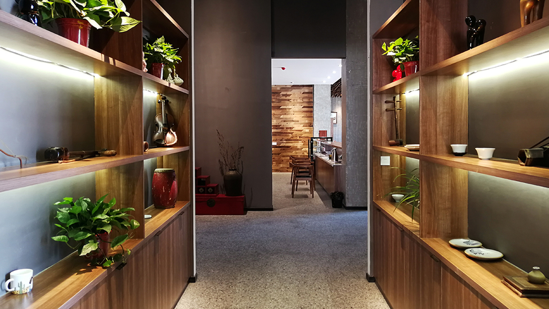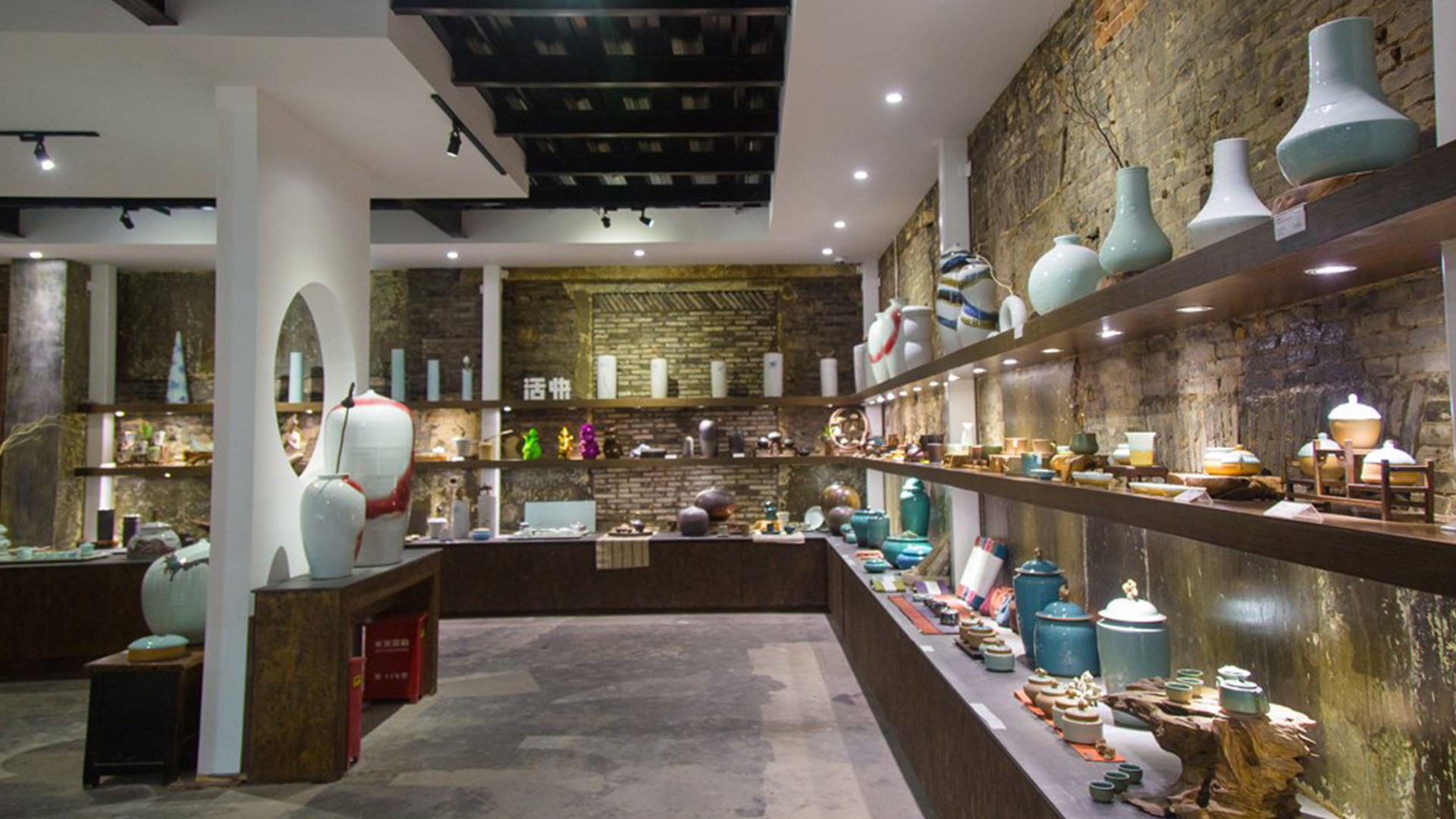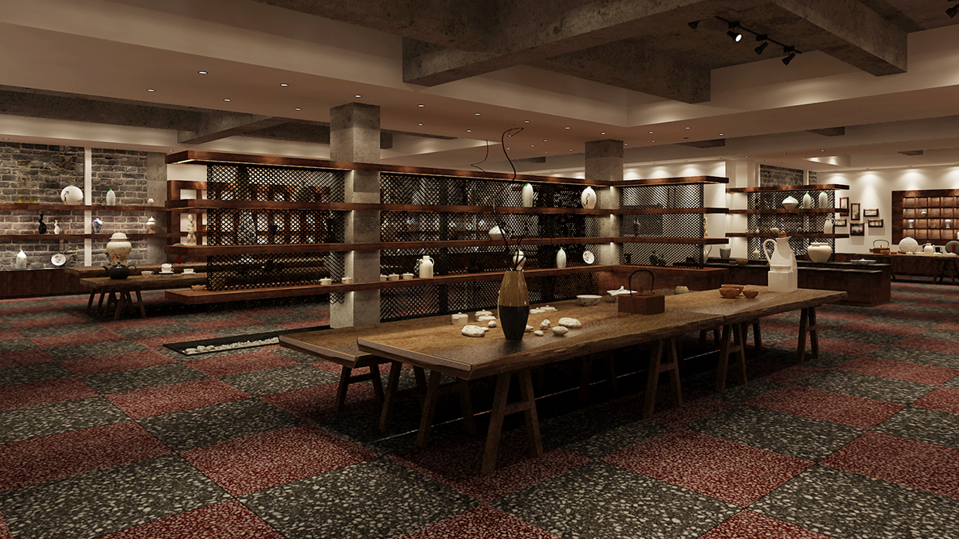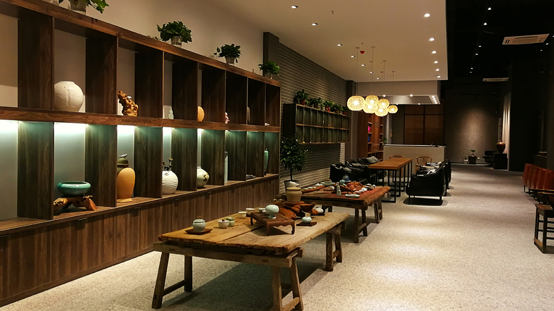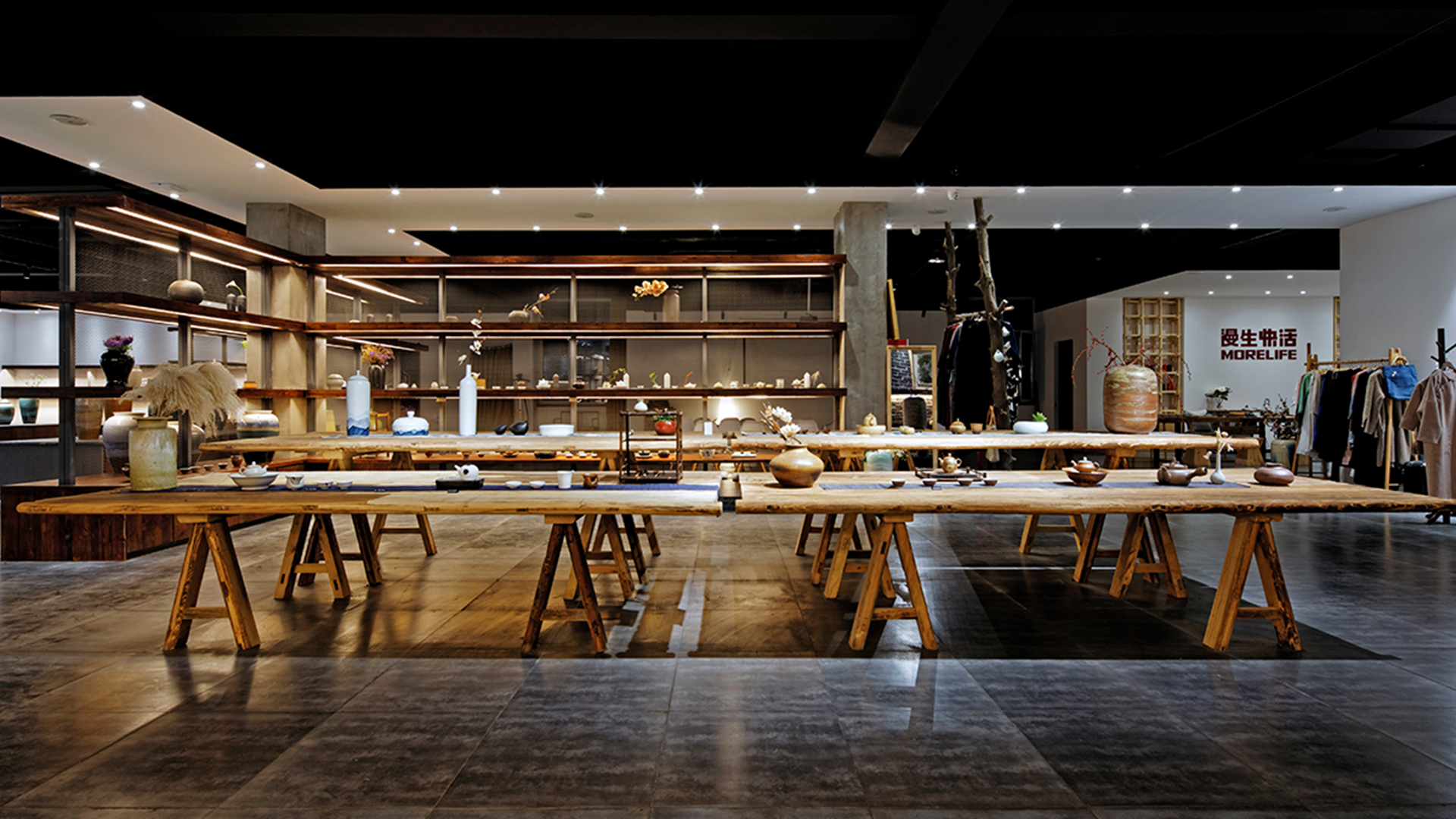 不争论,不辩解,不过分坚持,让本性自然释放,也许有一天我们还会走向自己的反面。如果说平衡是世界的本来面貌,那么节制就是自我的修行。在欲望似乎没有尽头的今天,节制便显得弥足珍贵。此项目运中江南园林中曲径通幽之形,设计在方寸之间强化了艺术瓷器的雅致特别,进入后为一个集展示、零售、体验及咖啡的综合空间。一扇木门、一个橱窗、一个景窗、一个圆形门廊,以多样含蓄的方式与艺术对话。