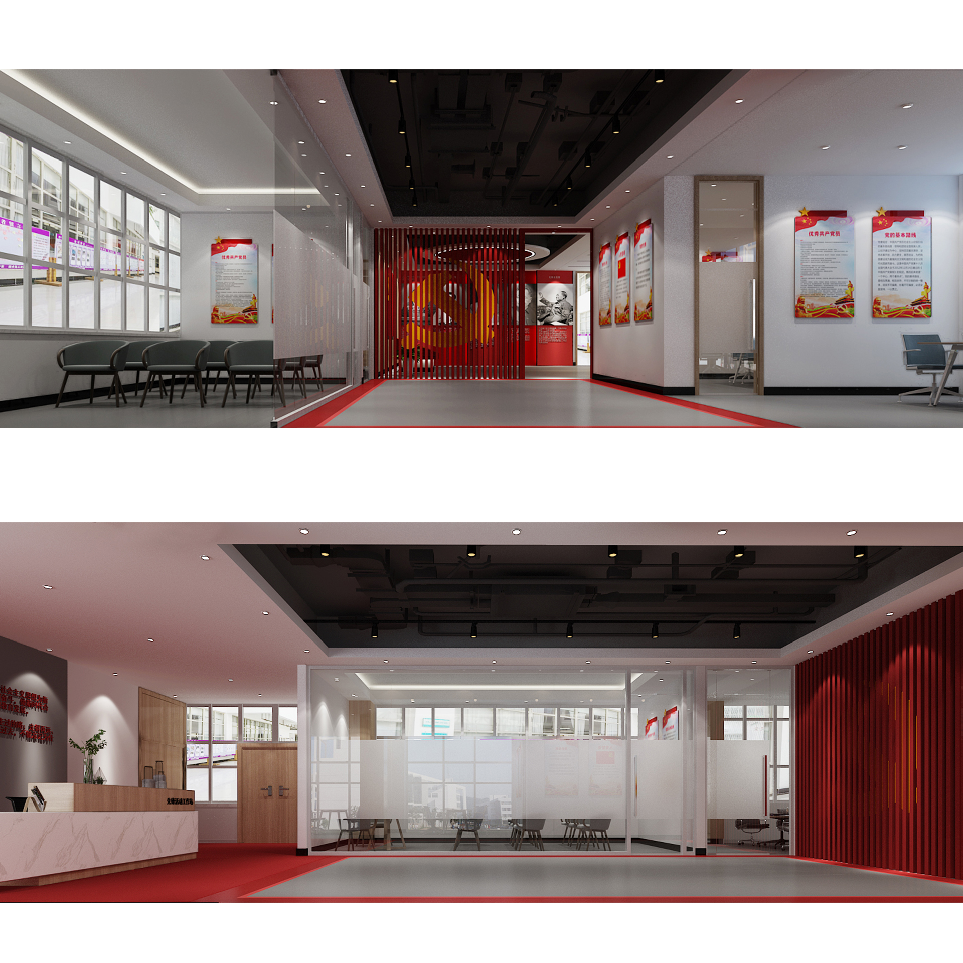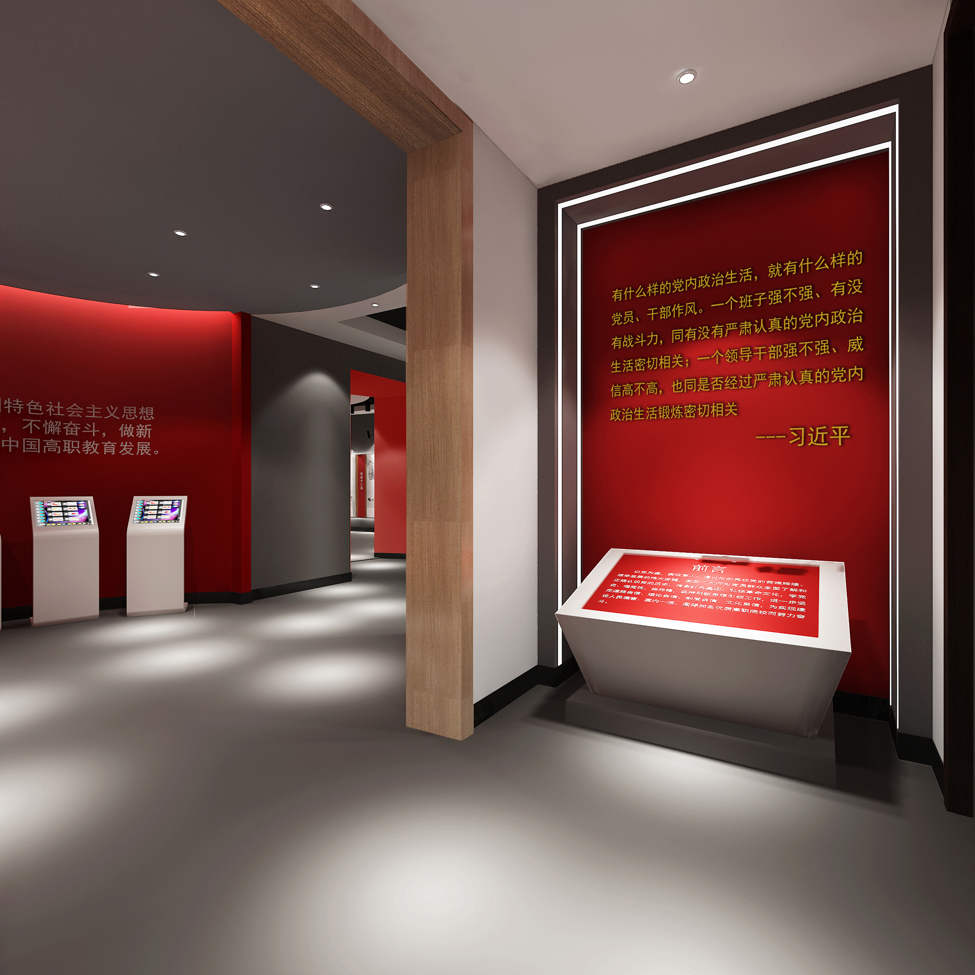 党建活动中心需要准确定义党建文化主题、时代性的展示、深刻的党史印象和空间的合理使用安排,弘扬正能量的同时,关心参观用户对党史展厅的体验度。