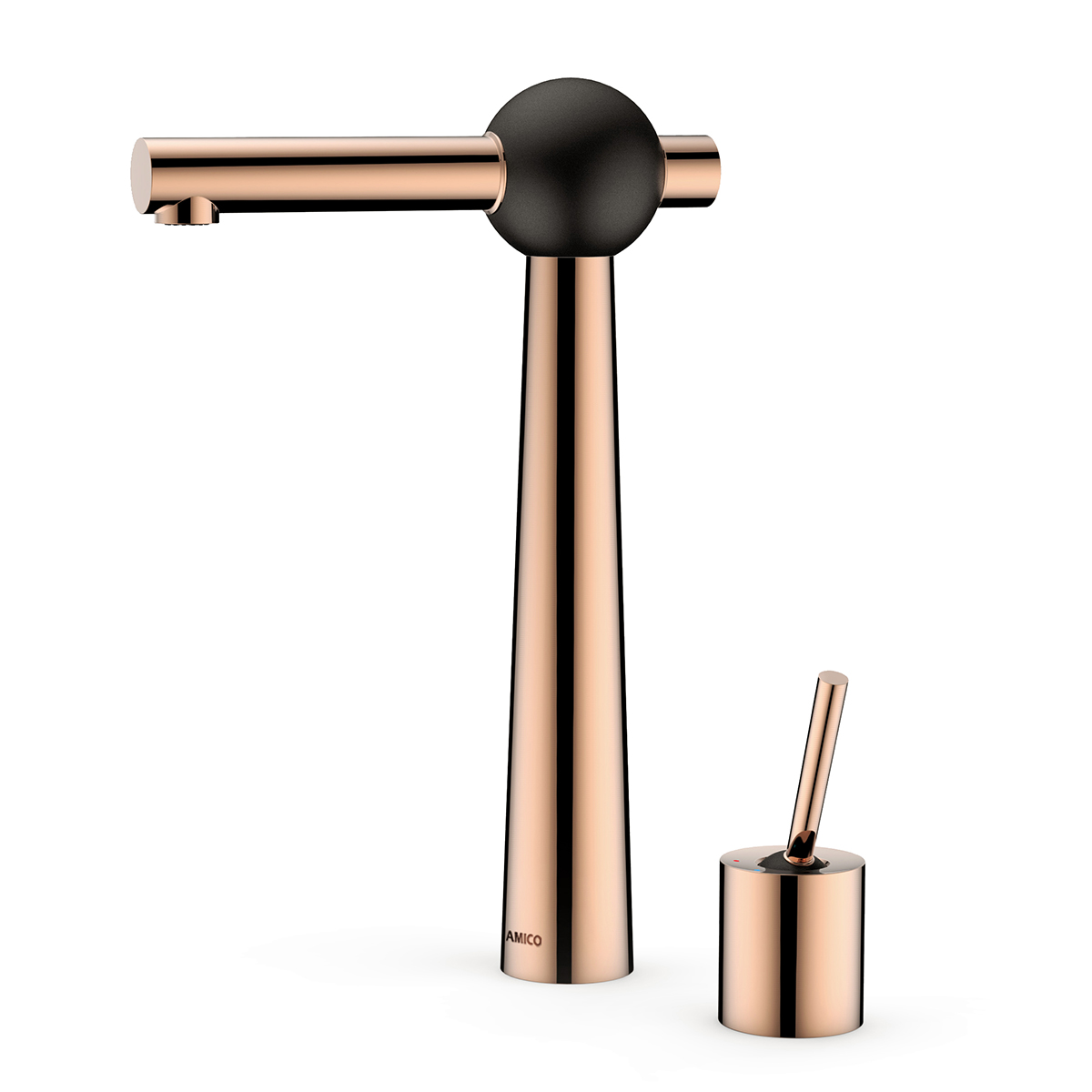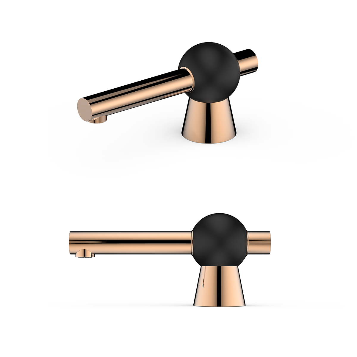 金属管件采用玫瑰金配色增添产品时尚贵气之感,磨砂黑色球体连接其中,给人典雅神秘之感,象征打破传统表现自我的精神价值。
