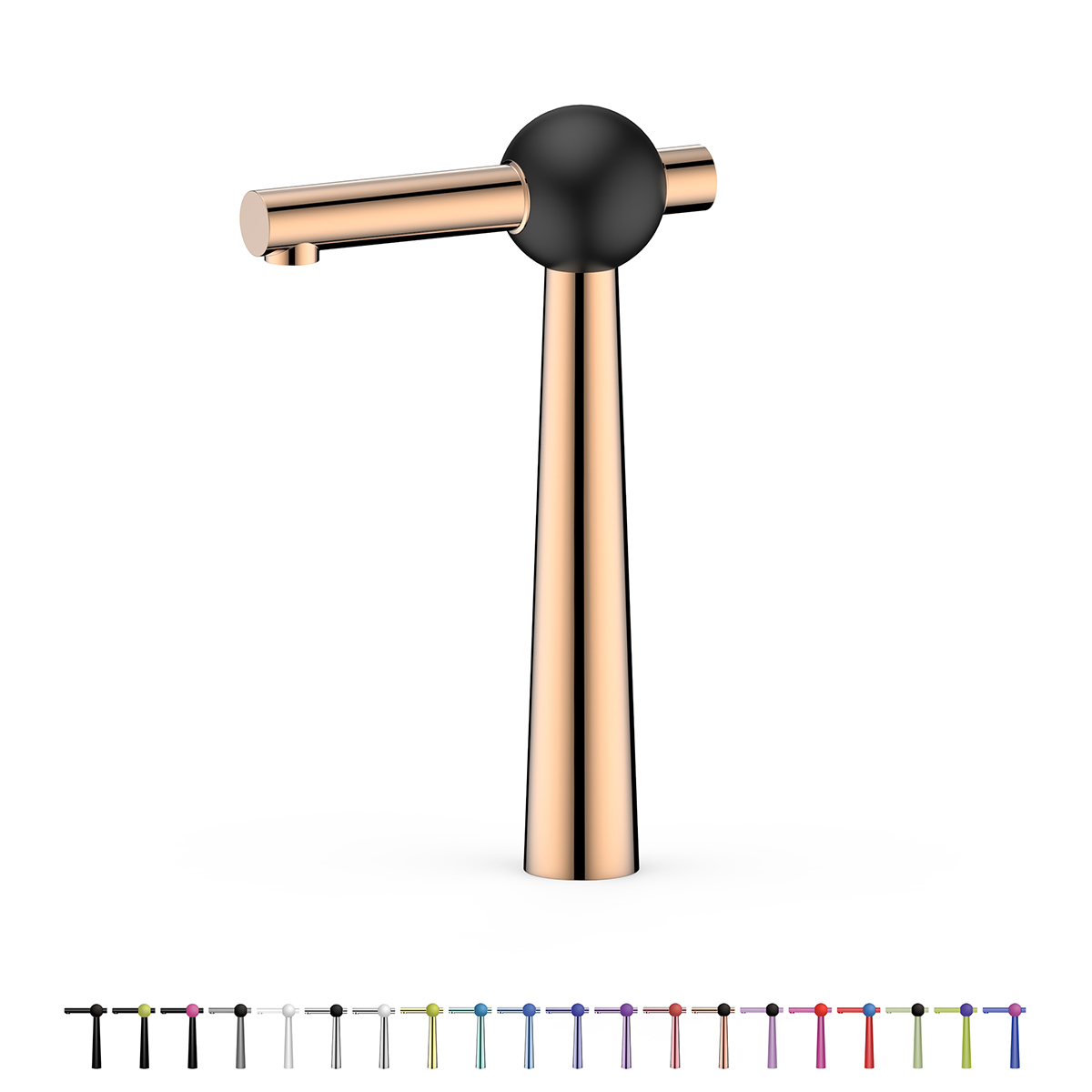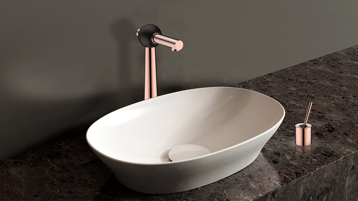 O-Time系列水龙头追随着少即是多的理念,以极简的几何形体塑造出一种极致的视觉体验。以20世纪初俄国构成主义风格为设计灵感,采用金属管、塑料球等简单几何形体,通过组构拼合的方式完成水龙头的基础形态设计。